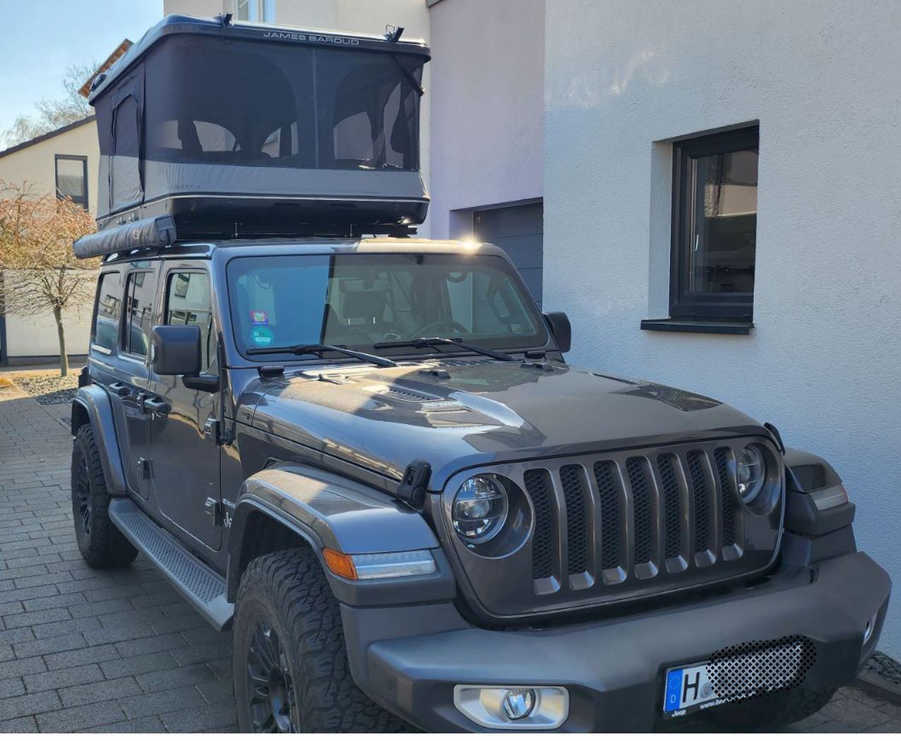 Der anthrazitfarbene Jeep Eagle Wrangler Unlimited verfügt über ein markantes Dachzelt in Form einer Dachbox. Zudem ist an der Beifahrerseite des Autos eine Markise fest verbaut. Der Schaden aufgrund des Diebstahls wird von der Polizei mit rund 50.000 Euro beziffert.