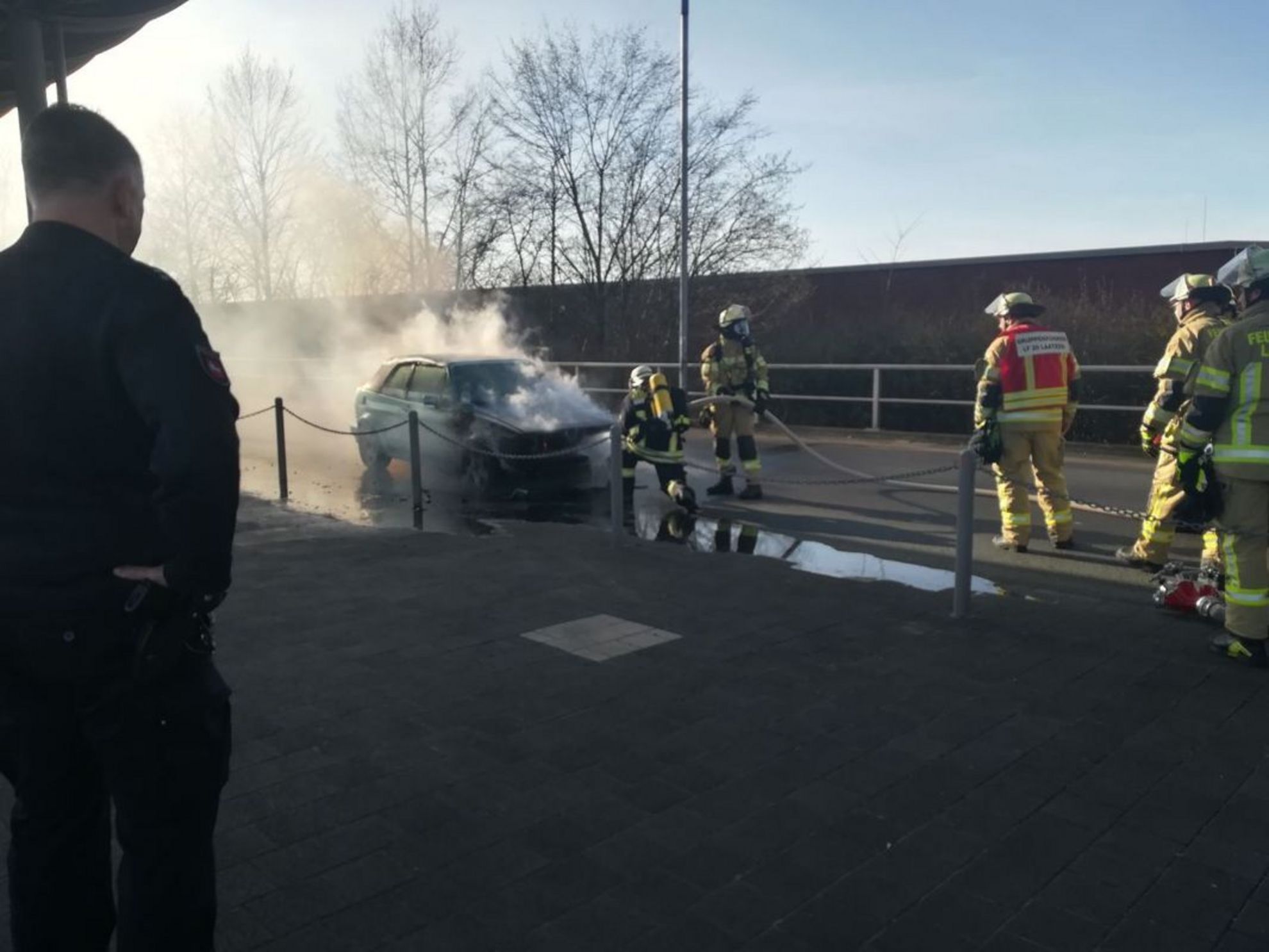 Lichterloh brannte am Freitagnachmittag gegen 17.15 Uhr ein VW Golf in der Münchener Straße (Alt Laatzen) unter dem sogenannten "Skywalk" zum Messegelände. Personen wurden nicht verletzt. Mit einem knappen Dutzend Helfern und zwei Fahrzeugen eilte die Ortsfeuerwehr Laatzen schon wenige Minuten nach dem Alarm zur Münchener Straße am Laatzener Bahnhof. An der Einmündung zur Karlsruher Straße stand das Auto, das im Motorraum brannte. Auf das Armaturenbrett und den Fahrgastraum schlugen die Flammen gerade über. Mit reichlich Schaum löschte die Feuerwehr unter Atemschutz den lichterloh brennenden VW einer 54-Jährigen aus dem Landkreis Hildesheim. Die Frau blieb unverletzt. Der Wagen musste abgeschleppt werden.
