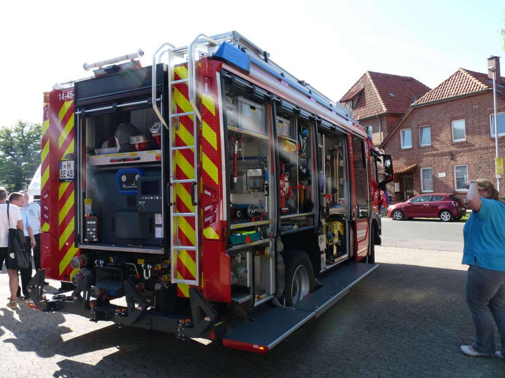 Aufgrund des Ukrainekriegs verzögerte sich die Lieferzeit vieler Teile, was dazu führte, dass das neue Fahrzeug nun erst ein Jahr später als geplant aufgenommen wurde. Das alte Feuerwehrfahrzeug, vor 30 Jahren für 240.000 DM angeschafft, soll an die Partnerfeuerwehr nach Kovel in der Ukraine gespendet werden. Das neue Feuerwehrauto ist größer und besser ausgestattet als das alte. „Anfangs hatte ich Sorge das es nicht in die Halle passen würde“, erklärte der Ortsbrandmeister, Jan-Hendrik Büthe, beeindruckt.