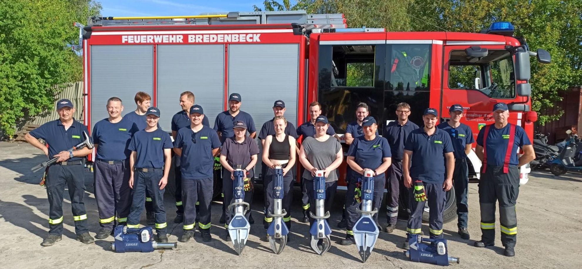 Am Ende des Tages waren die vier Ausbilder mit dem Ergebnis zufrieden. Alle Teilnehmer haben sehr engagiert mitgemacht und das neu Erlernte wurde gut umgesetzt. So sind die Teilnehmer für den Einsatzfall gut trainiert und sind auf dem aktuellen Stand der möglichen Rettungstechniken. Dankbar sind die Ausbilder und Teilnehmer darüber, dass sie so gut von der Firma Raubinger, Lukas Rettungsgeräte und Holmatro unterstützt wurden, damit diese Ausbildung überhaupt möglich war. Denn bei der Teilnehmerzahl reichen die Gerätschaften der Bredenebcker Feuerwehr alleine zum Trainieren nicht aus.