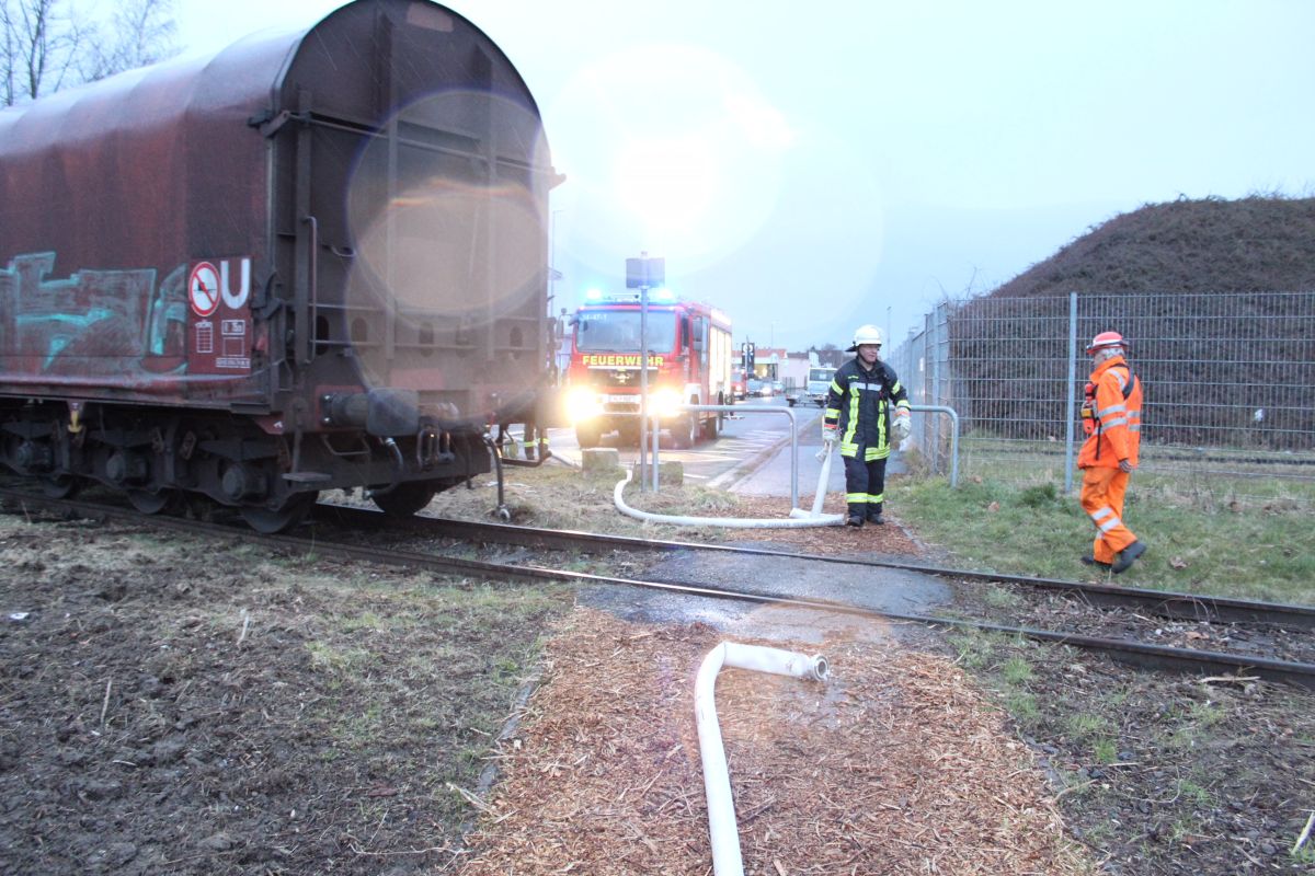 Zwei Gleise der Güterbahnstrecke (die während der Löscharbeiten mehrfach befahren wurde!) mussten dabei überquert werden. Zur Brandbekämpfung kamen zwei Strahlrohre und drei Trupps mit Atemschutzgeräten zum Einsatz. Zur Unterstützung wurde die Feuerwehr Kirchdorf nachalarmiert. Der dort stationierte Rüstwagen (ein Unimog) konnte als einziges Fahrzeug, über einen Feldweg, direkt zur Einsatzstelle vorfahren. Im weiteren Verlauf kam eine Wärmebildkamera, zur Kontrolle auf Brandnester und ein Drucklüfter zum Einsatz. Mit Einreißhaken wurde das Dach geöffnet.