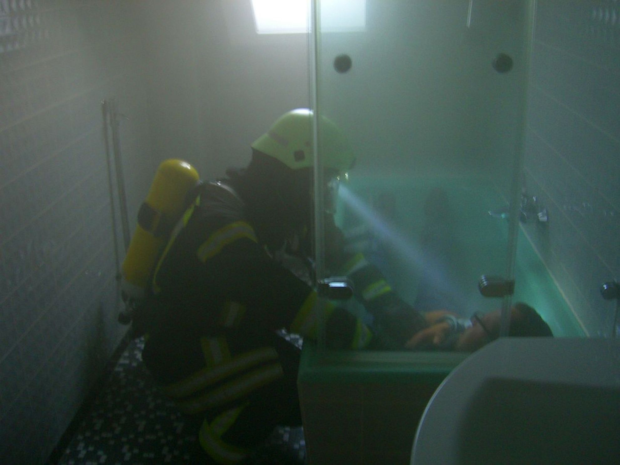 Die insgesamt 60 Einsatzkräfte hatten primär die Aufgabe die insgesamt sechs eingeschlossenen Personen aus dem Gebäude zu befreien sowie sekundär das simulierte Feuer zu bekämpfen. Über eine Steckleiter konnte innerhalb weniger Minuten nach Alarmierung ein Erstzugang zum Obergeschoss geschaffen werden. Insgesamt acht Einsatztrupps unter Atemschutz drangen nacheinander durch den Eingangsbereich im Hochparterre sowie in das Untergeschoss vor. Ein simulierter Notfall eines Feuerwehrmannes unter Atemschutz im Innenangriff erweiterte die Übungslage zusätzlich. Das Gebäude wurde systematisch nach den „eingeschlossenen“ Personen abgesucht. Mit Hilfe von Tragen, Rettungstüchern oder bloßer Muskelkraft konnten die vermissten Personen aus dem Gebäude verbracht werden. Zeitgleich wurde eine Wasserversorgung aufgebaut und mit drei Strahlrohren das „Feuer“ bekämpft.