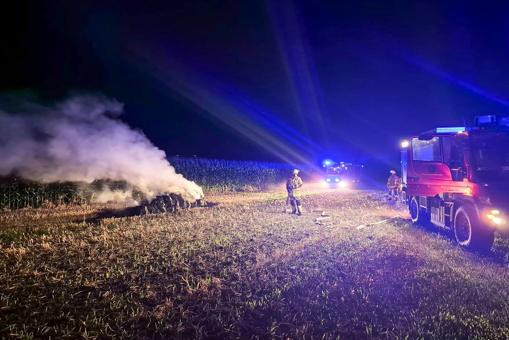 Neustadt. In der Nacht von Montag, 22. Juli, auf Dienstag, 23. Juli wurden gegen 0.40 Uhr die Feuerwehren Büren und Mariensee zu einem brennenden Strohrundballen an die Bürener Straße zwischen Büren und Wulfelade alarmiert..