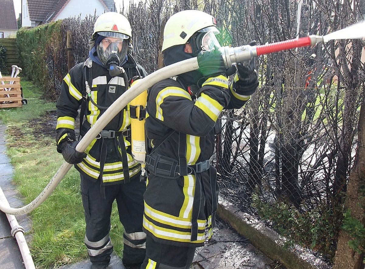 Aus bisher ungeklärter Ursache ist heute gegen 15.40 Uhr eine Hecke in der Königsberger Straße in Pattensen in Flammen aufgegangen. Vor Eintreffen der Feuerwehr bekämpften der Grundstückeigentümer und Nachbarn die Flammen mit Wasser aus ihren Gartenschläuchen. Für Nachlöscharbeiten setzte Einsatzleiter Ulrich Fleischmann zwei Trupps unter Pressluftatmern mit zwei C-Rohren ein. Nach knapp zehn Minuten konnte „Feuer aus“ gemeldet werden. Die circa 20 Meter lange und circa zwei Meter hohe Hecke wurde vollkommen zerstört. Der 45-jährige Grundstückseigentümer wurde zur Beobachtung in ein Krankenhaus gebracht. Er zog sich bei den Löscharbeiten vermutlich eine Rauchgasvergiftung zu. Bei einem vor der Hecke geparkten PKW verschmorten ein Scheinwerfer und der Stoßfänger. Gebäude wurden nicht beschädigt.