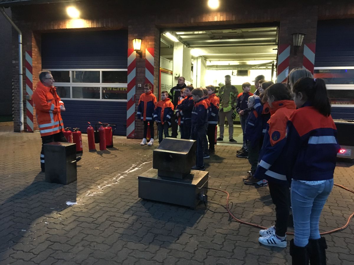 Jugendfeuerwehr übt Umgang mit Feuerlöschern