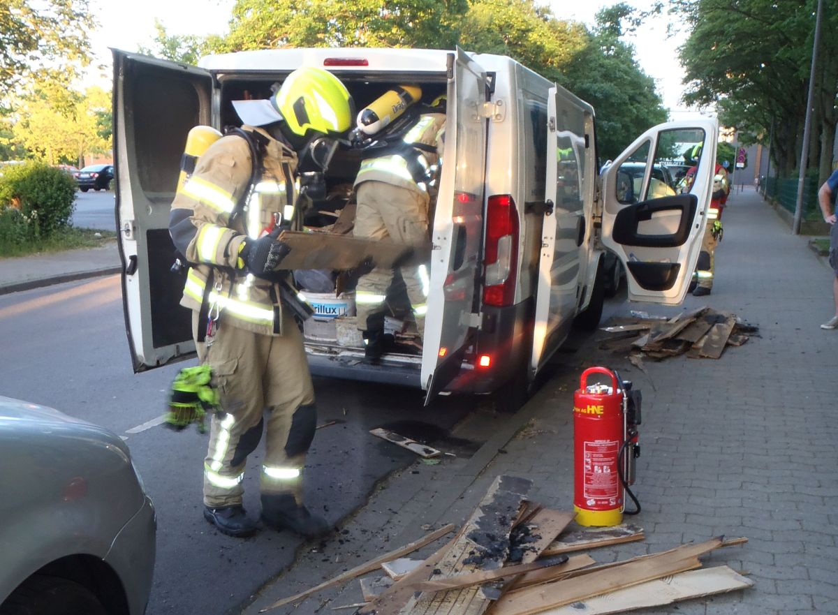 Am Montag, 14. Mai, um 20.10 Uhr alarmierten Anwohner der Flemingstraße in Laatzen die Ortsfeuerwehr zu einem Autobrand. Ein Lieferwagen hatte sich selbständig entzündet. Vor dem Eintreffen der Feuerwehr konnte der Fahrer des Firmenwagens den Brand zwischenzeitlich mit zehn Litern Mineralwasser löschen. Im Laderaum des Kastenwagens waren Fußbodenhölzer gestapelt, welche durch ein spezielles Öl auf dem Ladeboden das Feuer entfachten. Ein Trupp unter Atemschutz entlud den Wagen und kontrollierte mit einer Wärmebildkamera die Ladung. Anschließend begleitete die Polizei und die Feuerwehr die Überführung des Fahrzeugs zum Firmensitz in Rethen.