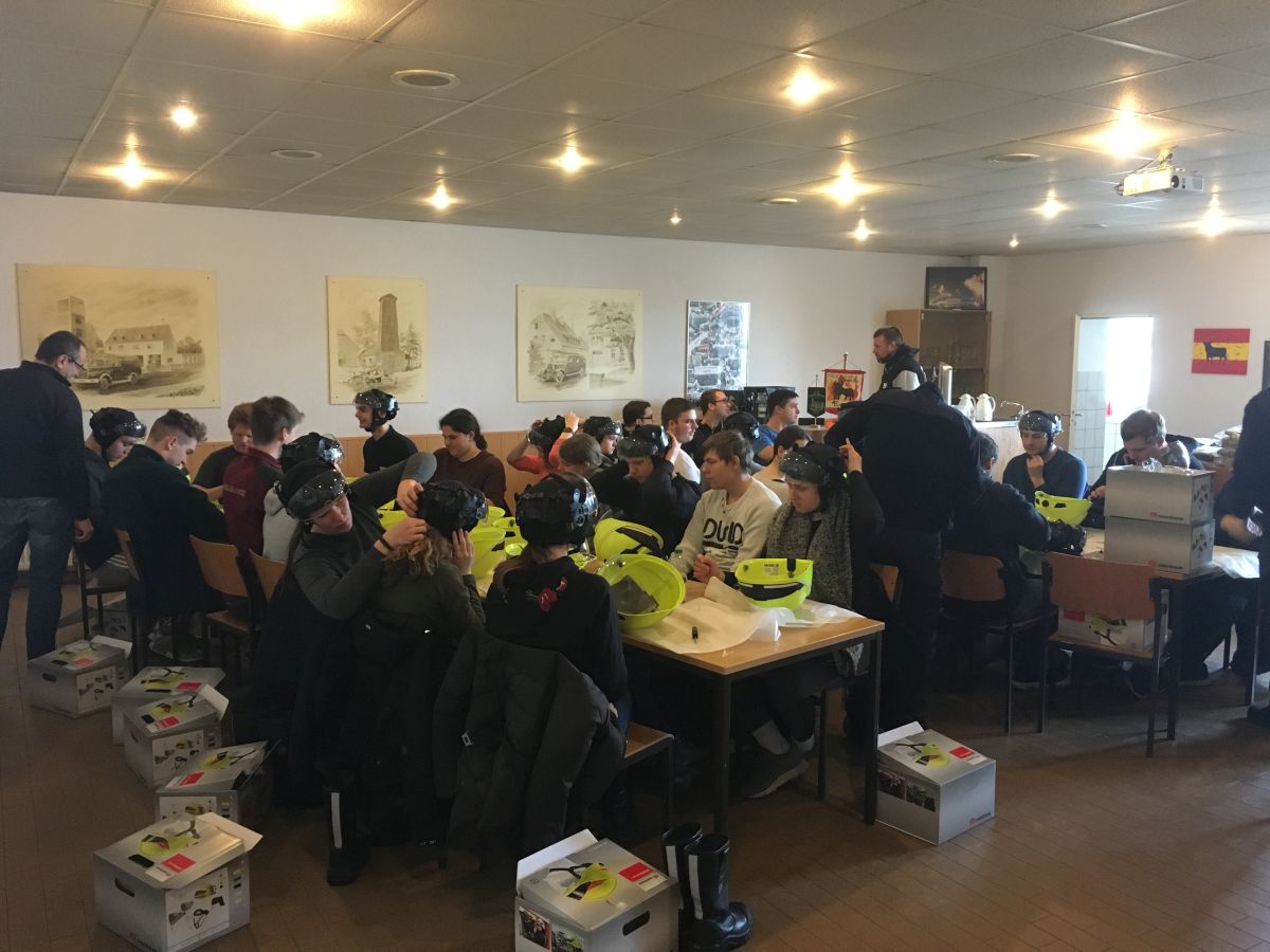Gestartet wurde mit der rund zwei Stunden dauernden Einweisung in den neuen Helm, bei der die anwesenden gelernt haben, wie der Helm auseinander- und wieder zusammengebaut wird. Dies ist wichtig, da die neuen Helme nach einem Brandeinsatz auseinander gebaut werden müssen, um die Schale und das Innenleben getrennt voneinander reinigen zu können. Darüber hinaus haben die Teilnehmer gelernt, welche optischen Merkmale an ihrer Helmschale darauf hinweisen könnten, dass der Helm ersetzt werden muss.
