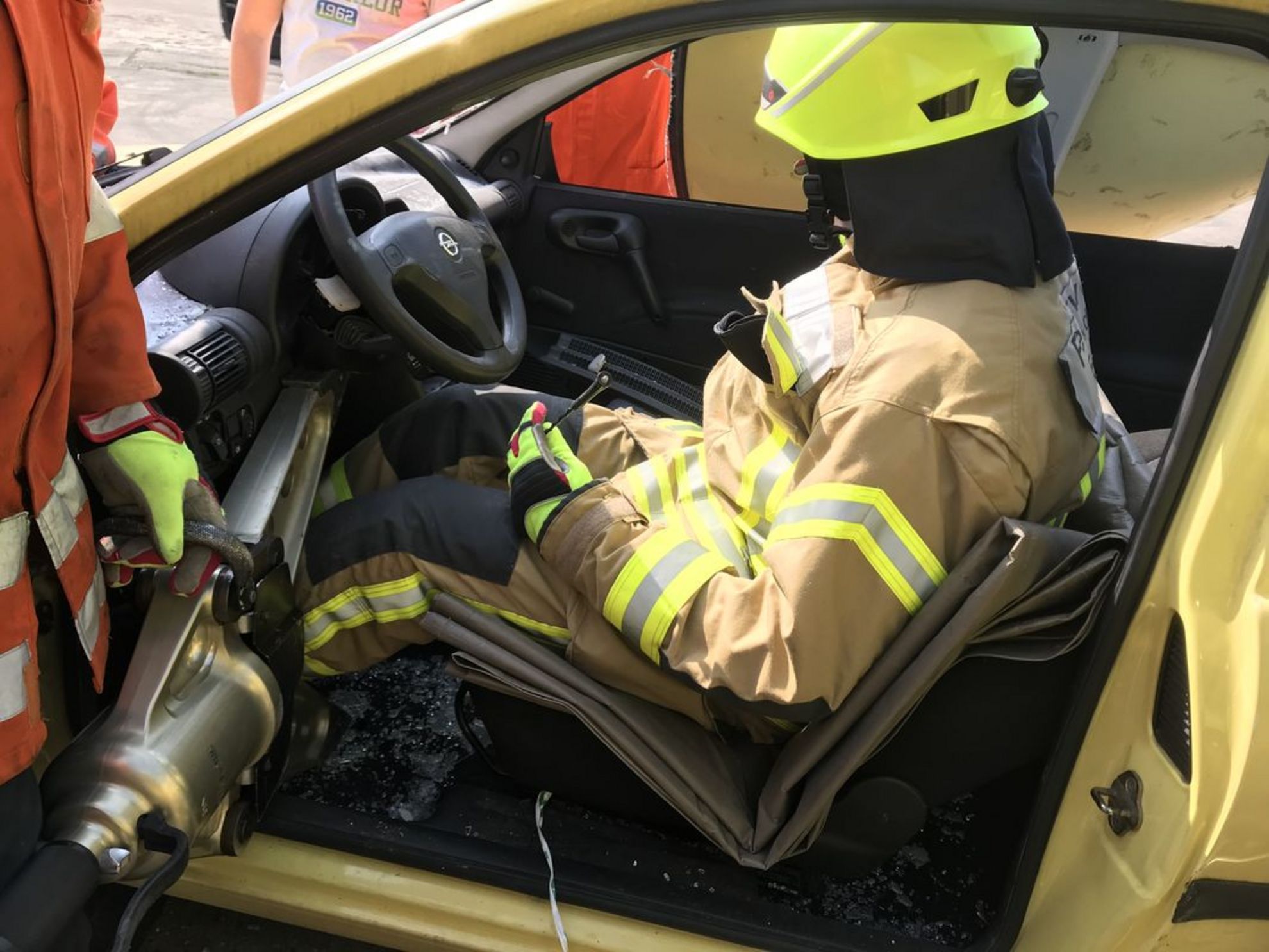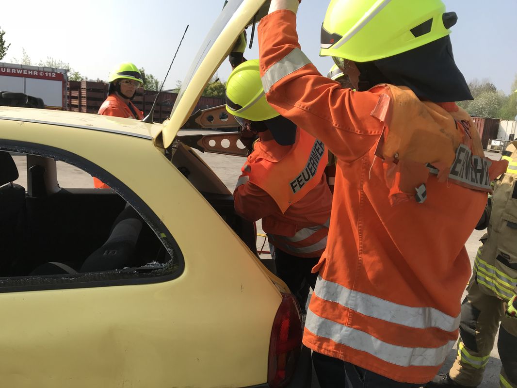 Die zweite Gruppe beschäftigte sich mit neuen Methoden und Möglichkeiten der technischen Hilfe. Hierzu stand das Hilfeleistungslöschgruppenfahrzeug (HLF) der Ortsfeuerwehr Ronnenberg zur Verfügung. Zuerst machten sich die Feuerwehrleute mit dem Fahrzeug vertraut. Später wurde die Geräteablage auch hier aufgebaut. Verschiedene Szenarien, wie die sog. „Tunnelrettung“ oder das Befreien der Beine einer eingeklemmten Person, wurden mit verschiedenen Methoden angegangen, um im Notfall variabel handeln zu können. Weiter konnte auch ein auf der Seite liegendes Auto, mittels einer Rettungsplattform als Rettungsobjekt, genutzt werden. Diese Erfahrung war für viele Teilnehmer neu, da die Ortsfeuerwehr Empelde keine eigene Rettungsplattform besitzt.