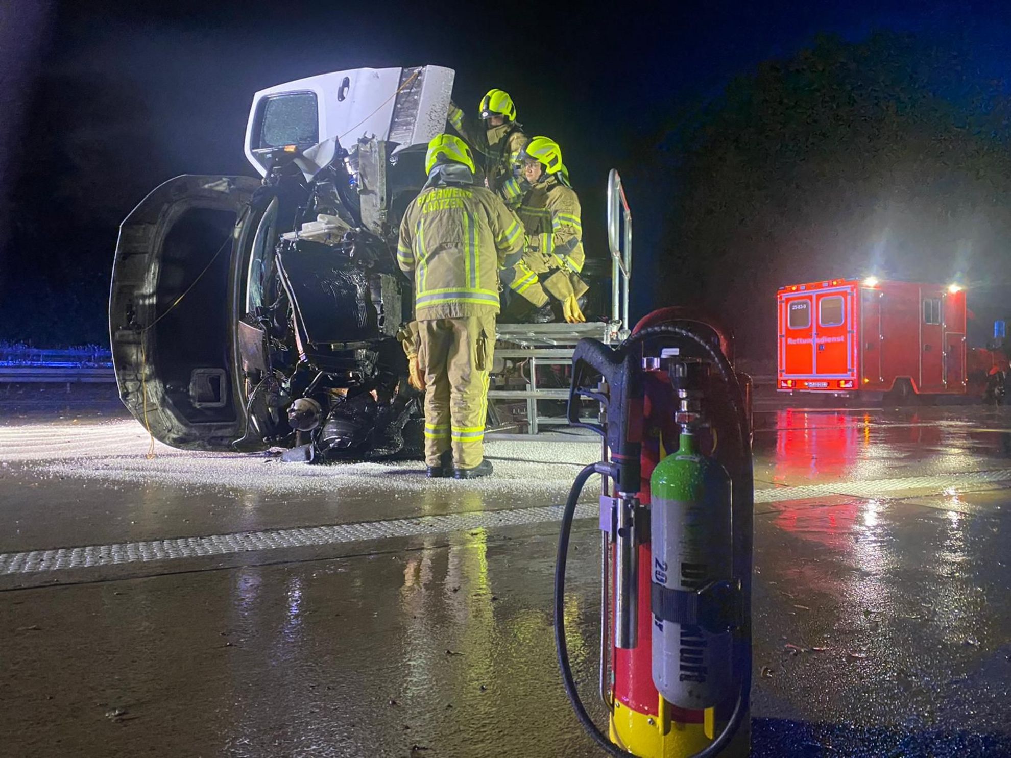 Laatzen. Am heutigen Morgen (14. Oktober) gegen 4.30 Uhr wurde die Ortsfeuerwehr Laatzen auf die Autobahn A37 alarmiert. Ein Personenwagen sollte sich überschlagen haben, lautete die Meldung. Mit mehreren Fahrzeugen rückten die ehrenamtlichen Helfer umgehend vom Standort im Sankt-Florian-Weg aus. Vor Ort fanden die Helfer einen weißen Kastenwagen (Sprinter), der umgekippt war und auf der Seite lag. Die .