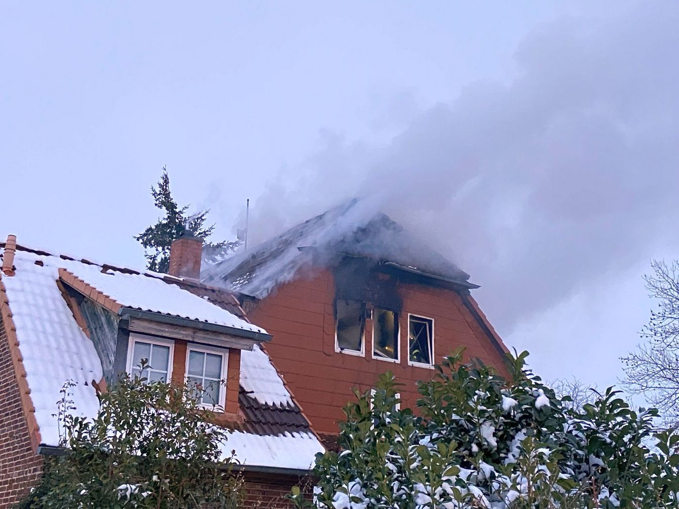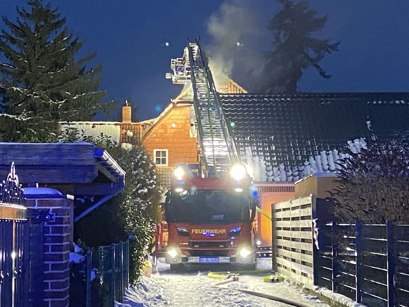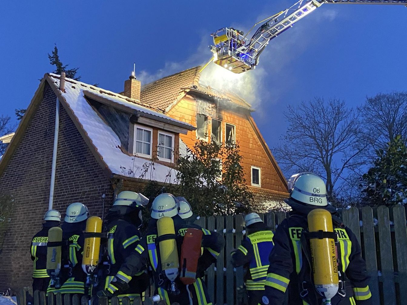 Vor Ort war auch Bürgermeister Henning Schünhof: „Ich danke den Einsatzkräften für ihr schnelles Handeln und das gute Zusammenspiel zwischen den Ortswehren. Die neue Drehleiter macht sich auch bei diesem Einsatz bezahlt, denn ohne die abknickbare Leiter könnten die Kräfte nicht so nah an das Haus heran.“