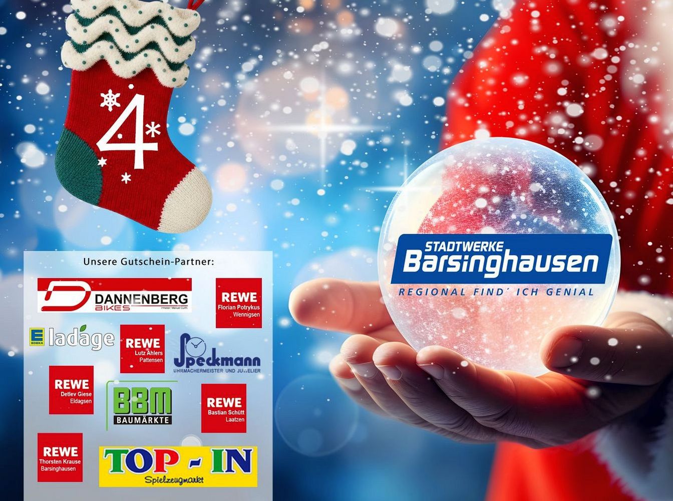 die festliche Jahreszeit ist in vollem Gange. Und wir möchten die Vorfreude auf Weihnachten mit Ihnen teilen. In diesem Jahr haben wir wieder etwas ganz Besonderes für Sie vorbereitet – unseren digitalen Adventskalender. Heute mit dem Tagespartner Stadtwerke Barsinghausen.