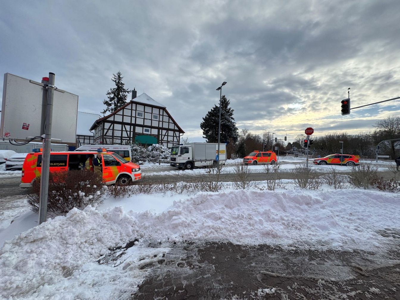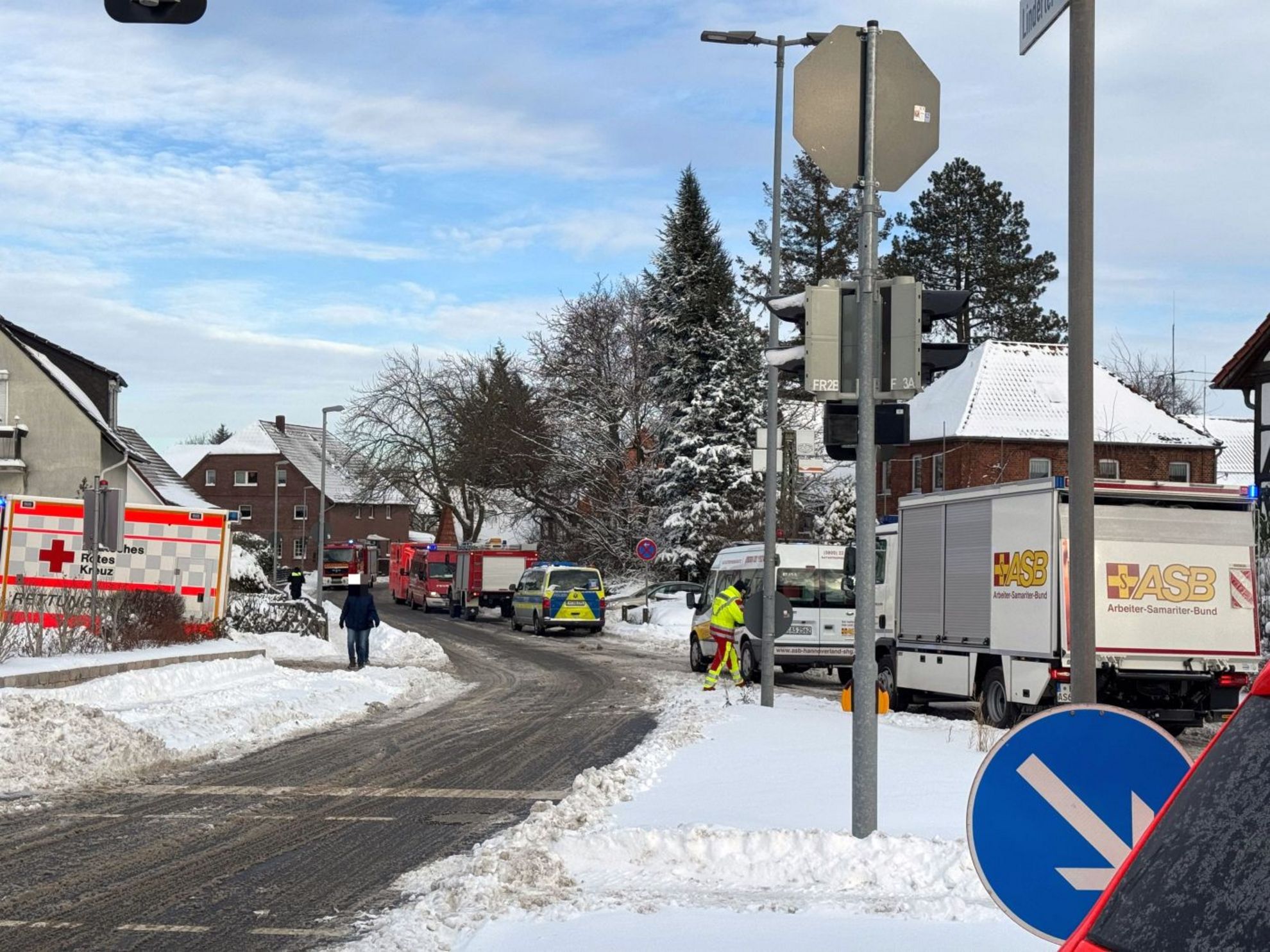 Die Ortsdurchfahrt ist aktuell noch gesperrt. Die Patientenversorgung läuft noch.