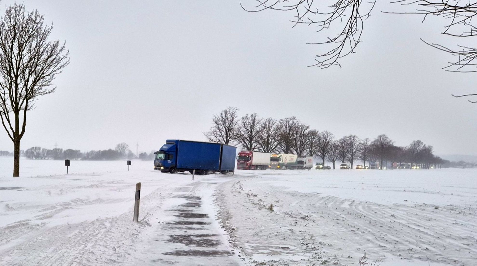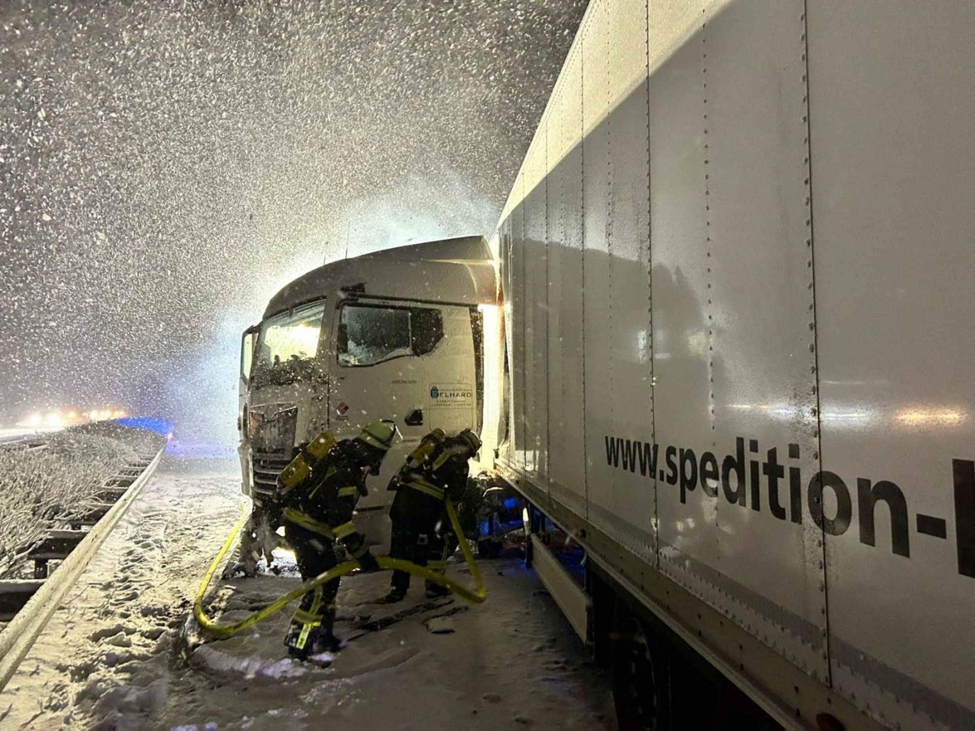 Durch den Stau auf der verschneiten Fahrbahn kamen die Einsatzkräfte aufgrund einer fehlenden Rettungsgasse nur sehr langsam zum Einsatzort voran. Zeitweise saßen die Einsatzfahrzeuge im Stau ebenfalls fest.