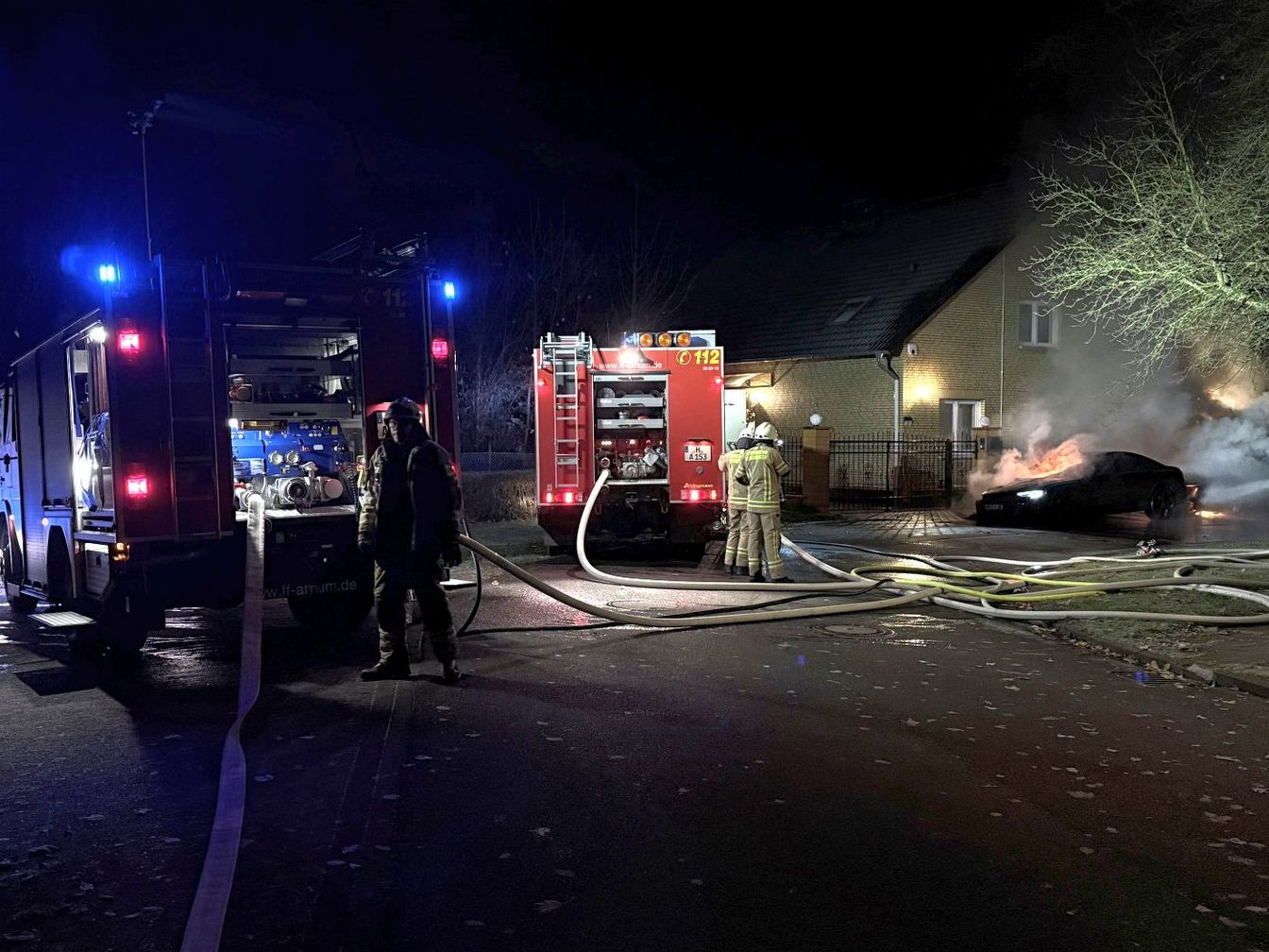 Nächtlicher PKW-Brand in Arnum - Übergreifen auf ein Haus konnte verhindert werden