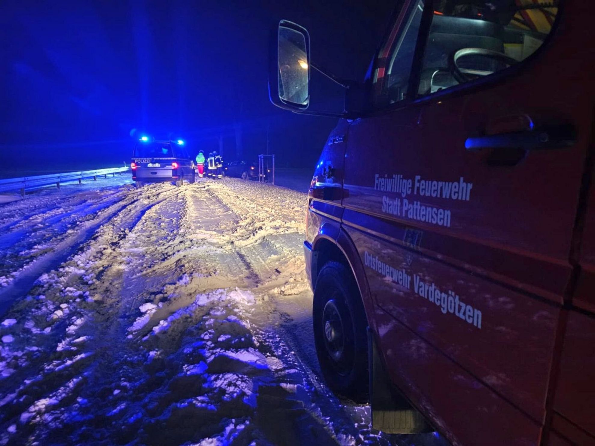 Besonders herausfordernd gestalteten sich die Anfahrt, die Arbeiten an der Einsatzstelle sowie das Abrücken der Einsatzkräfte. Aufgrund des einsetzenden Windes kam es auf der Fahrbahn der B3 und im Bereich der Unfallstelle innerhalb kürzester Zeit zu starken Schneeverwehungen. Einsatzfahrzeuge konnten den Bereich teilweise nur mit Schrittgeschwindigkeit befahren.