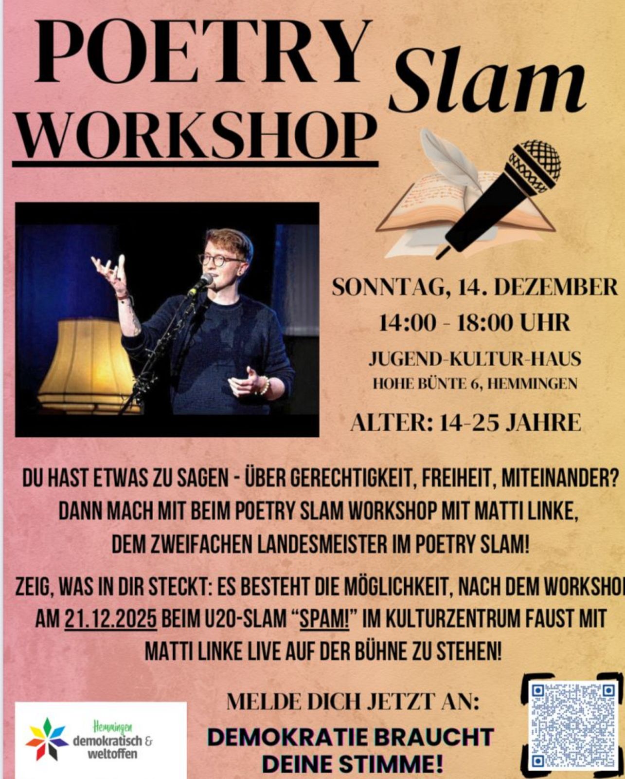 Hemmingen. Die Gruppe Generation Zukunft des Hemminger Bündnisses für Demokratie und Weltoffenheit lädt am Sonntag, 14. Dezember, zu einem Poetry-Slam-Nachmittag ein. Zu Gast ist der zweifache Landesmeister im Poetry Slam Matti Linke.
