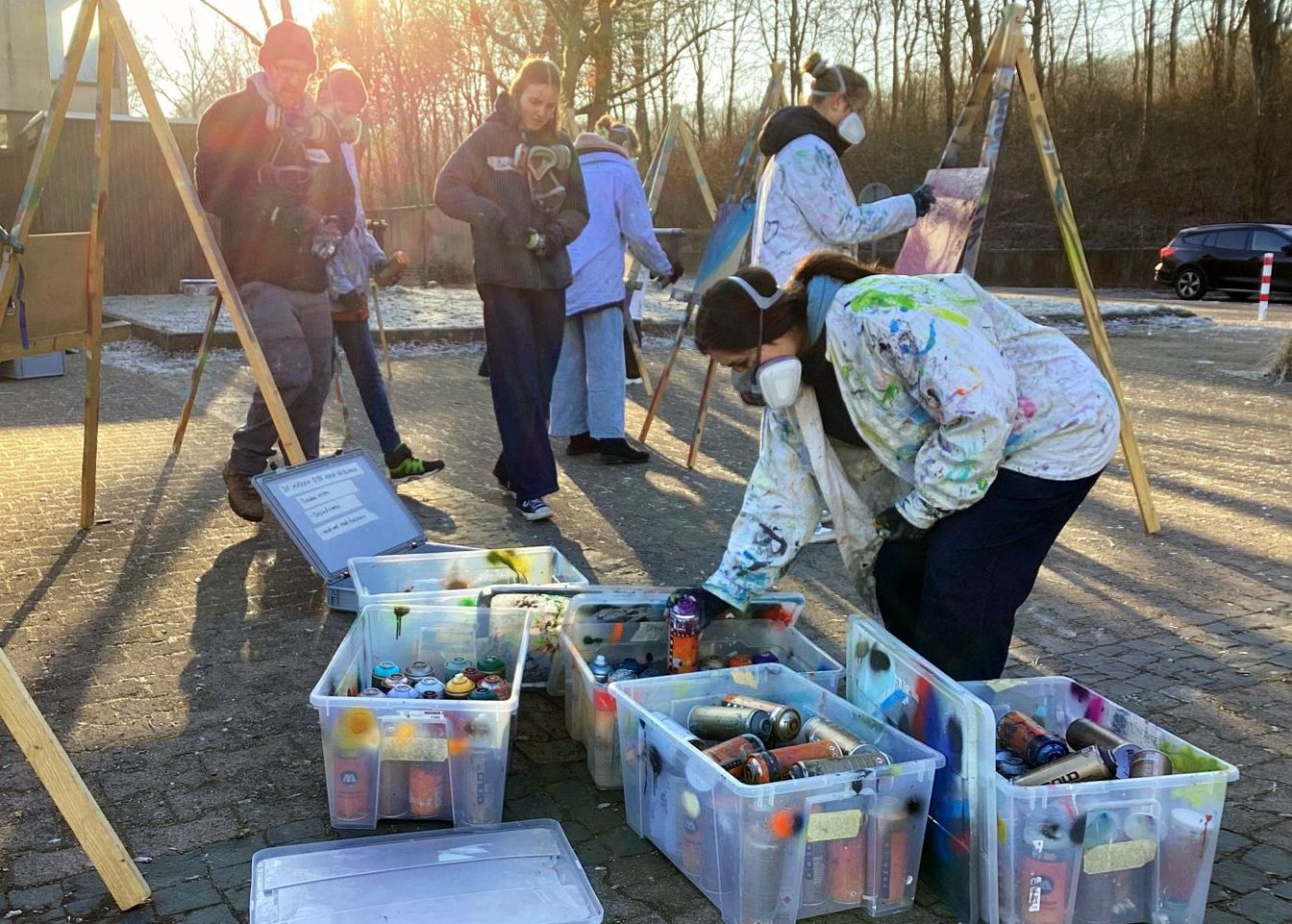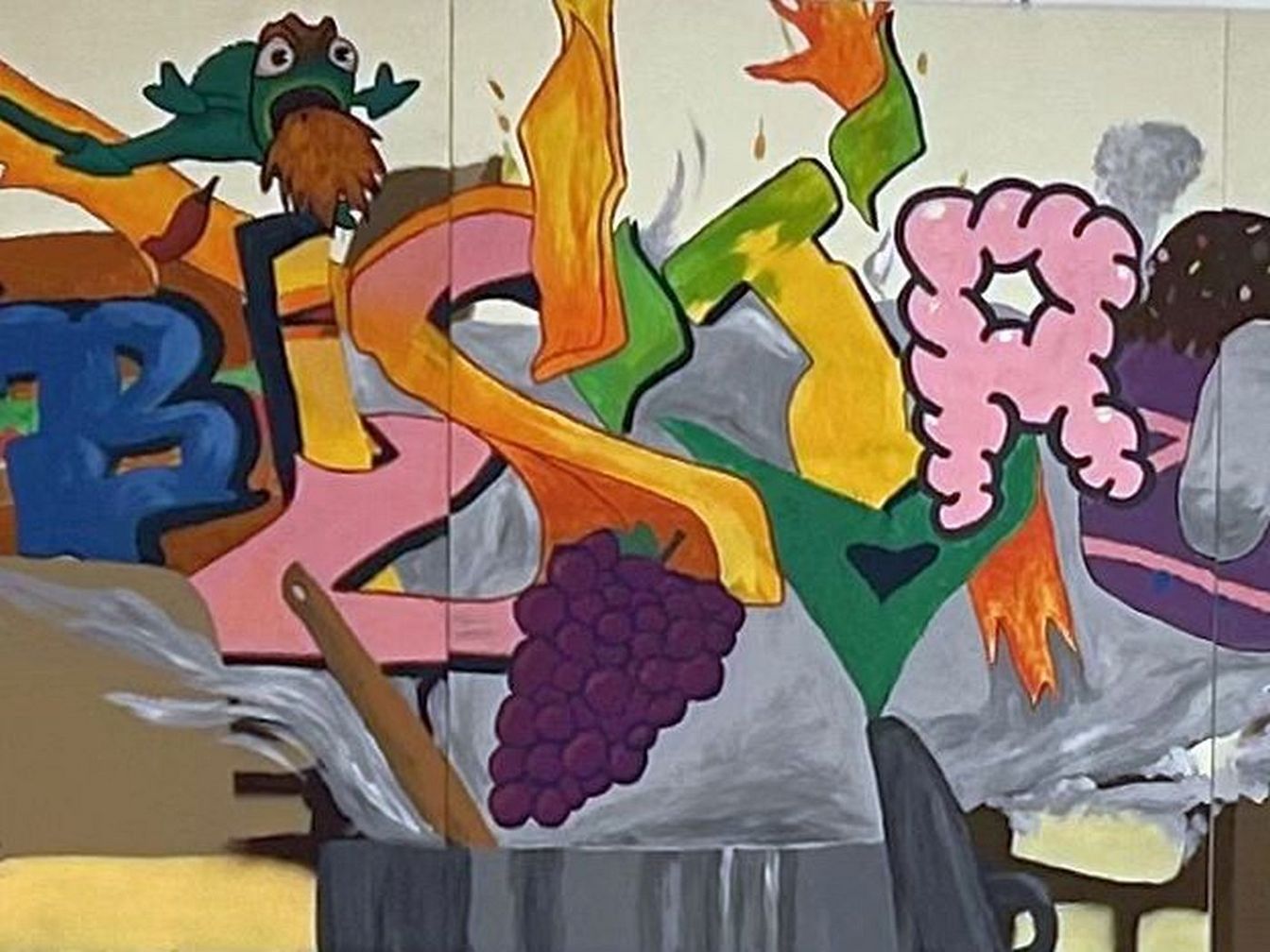 Vom 19. bis 23. Januar gestalteten 13 engagierte Schülerinnen beider Schulen eine rund elf Quadratmeter große Wandfläche im Bistro. Unterstützt wurden sie dabei vom Diplom-Künstler Philipp von Zitzewitz. Nach ersten Sprühübungen im Freien und einer Entwurfsphase entstand ein großformatiges Wandbild in Mischtechnik aus Graffiti-Elementen und Acrylmalerei. Das über sieben Meter breite und etwa 1,5 Meter hohe Kunstwerk zeigt zahlreiche humorvolle und kulinarische Motive und lädt dazu ein, bei den Mahlzeiten immer wieder neue Details zu entdecken.