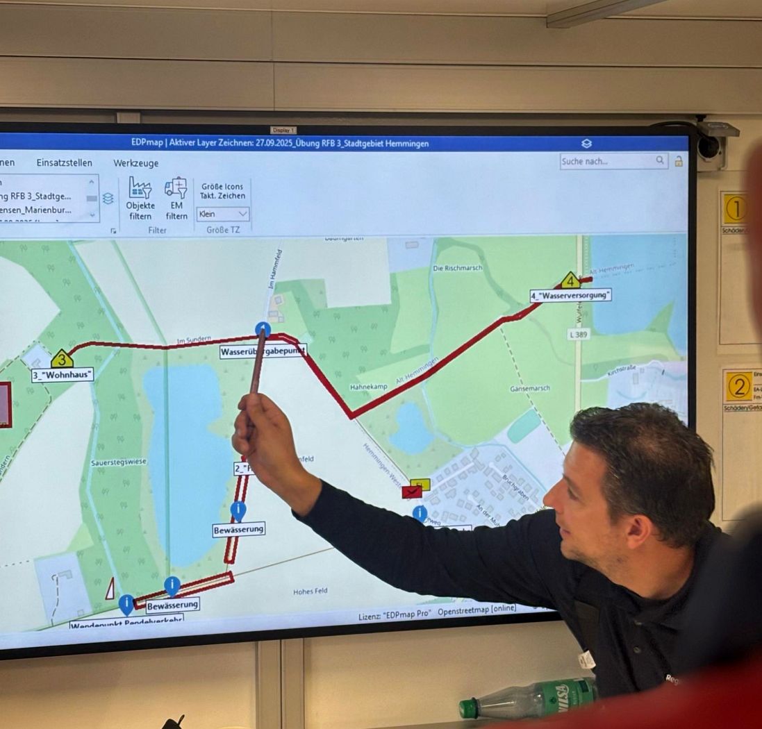 Es wurde u. a. das Fahren in einem Verband / Kolonnenfahrt, die Wasserversorgung über mehrere Kilometer Wegstrecke, das Errichten einer Schlauchbrücke über eine Landstraße, die Einsatzdokumentation mittels Drohnen, sowie die Koordination und Kommunikation über den Einsatzleitwagen geübt. Ebenfalls stand die Verpflegung der eingesetzten Kräfte bei Großschadenereignissen auf dem Übungsplan.