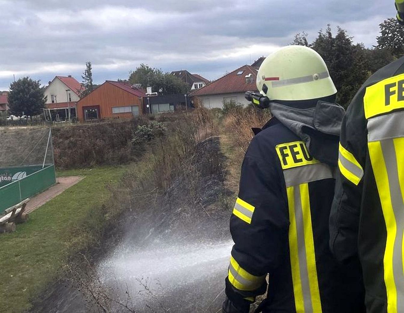 Zunächst wurden die Feuerwehren Hüpede, Oerie und Vardegötzen am Donnerstag, 18. September gegen 16.50 Uhr zu einem Flächenbrand in Hüpede gerufen. Aus ungeklärter Ursache brannte an der Oerier Straße, in der Nähe des Sportplatzes die Vegetation auf ca. 200 m² auf einem Erdwall. Ohne großen Aufwand konnte die Ortsfeuerwehr Hüpede das Feuer innerhalb kürzester Zeit löschen.
