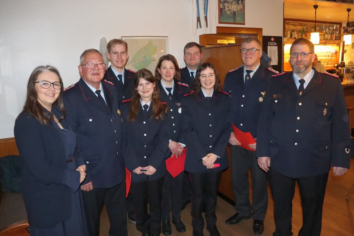 Frederick Müller wurde zum Oberfeuerwehrmann, John Schmidt zum 1. Hauptfeuerwehrmann und Maren Tschiche zur 1. Hauptfeuerwehrfrau befördert. Sophia Mensing und Nika Hanke wurden nach bestandener Grundausbildung zu Feuerwehrfrauen ernannt