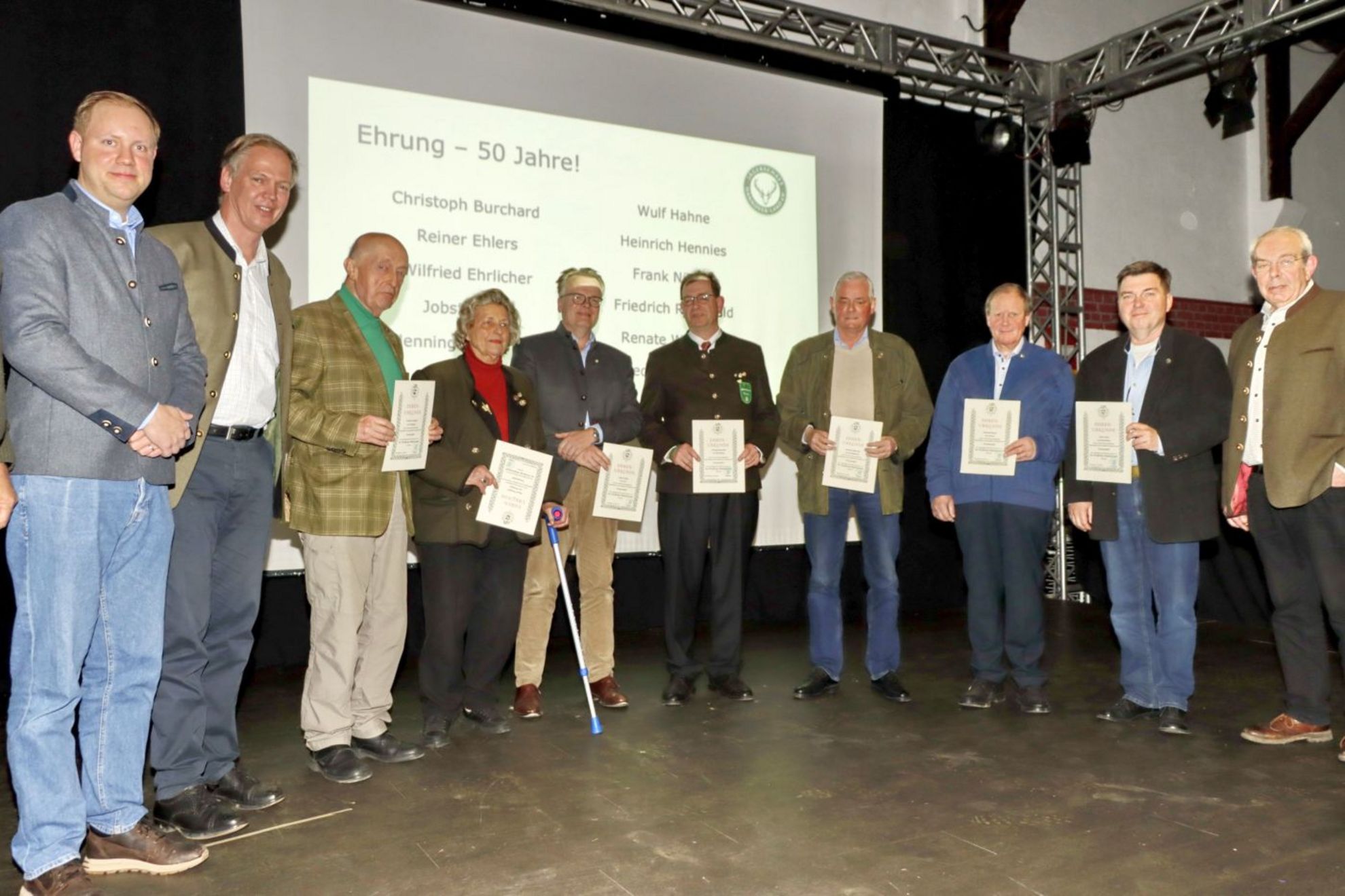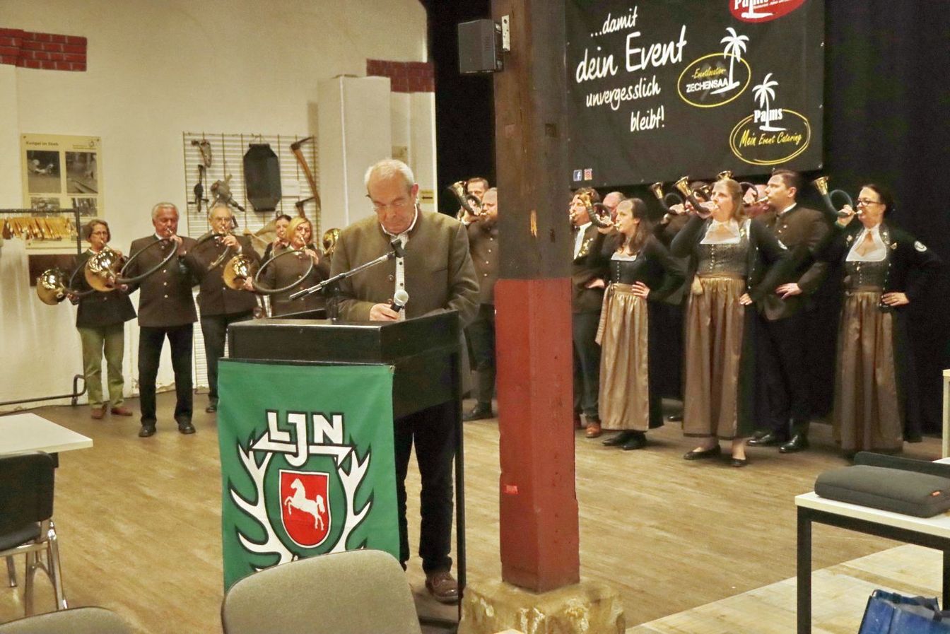 Für ihren Einsatz und Engagement um das deutsche Jagdwesen wurden zahlreiche Mitglieder mit der LJN-Verdienstnadel ausgezeichnet. Für die langjährige Treue und Mitgliedschaft in der LJN und JHL wurden Ehrenurkunden und Nadeln überreicht. Unter den Geehrten auch Adolf Knölke aus Gehrden für seine 65-jährige Zugehörigkeit der Landesjägerschaft Hannover- Land. Er war nach der bestandenen Jägerprüfung 1959 Mitglied geworden. 3 Jahre später wurde Adolf Jagdpächter im Revier Gehrden. In den Jahren 1987 und1997 hat Adolf Knölke für sein Engagement für die Jägerschaft die Silbernadel von der Landesjägerschaft Niedersachsen und 1997 die Treunadel in Silber vom deutschen Jagdverband erhalten. Von 1980 bis 1997 war Adolf Knölke Vorsitzender der Jägerschaft Hannover- Land. Als Lehrgangsleiter lag ihm die Ausbildung der Jäger besonders am Herzen. Bevor Herr von Örtzen aus Barsinghausen die Nachfolge übernahm, war die Mitgliederverwaltung auf EDV umgestellt worden. 12 Jahre lang war Adolf auch Jagdbegleiter bei Drückjagden im Mauerpark, den sogenannten Ministerjagden unter Leitung von Forstdirektor Menzel. Auch für die Anerkennung siebzigjähriger Zugehörigkeit zu einer jagdlichen Organisation wird Heinrich Liehe aus Sehnde mit der Treunadel geehrt. Heinrich Möller wurde mit der Bronzenadel als Naturschutzbeauftragter, Christoph Burchard für 50 Jahre Bläserchor Calenberg und Wolfgang Fiedler für sein großes Engagement für die Jägerschaft mit dem Goldenen Rebhuhn geehrt.