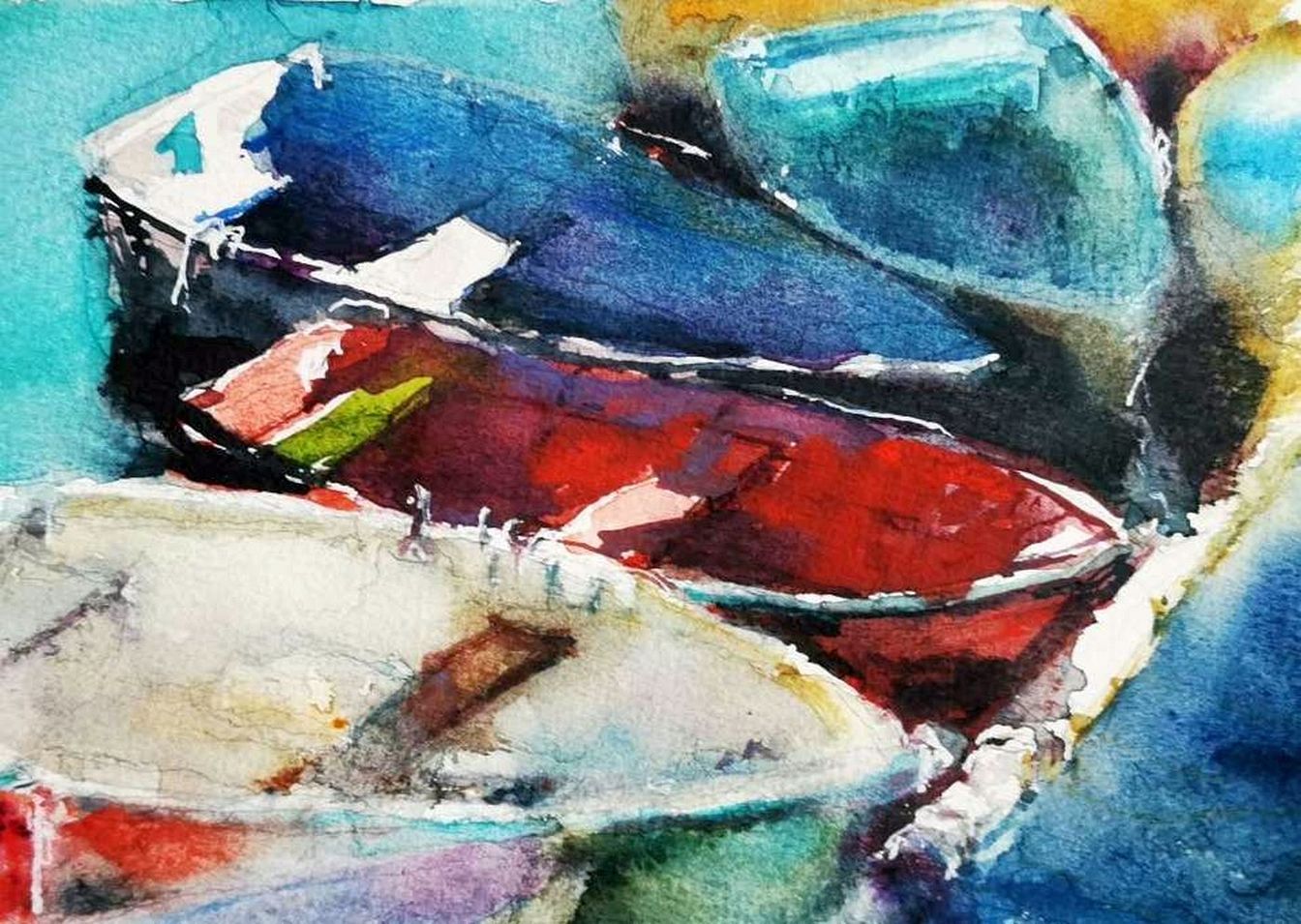 - Schwerpunkt: Aquarellmalerei mit Fokus auf Boote, Wasser und Licht