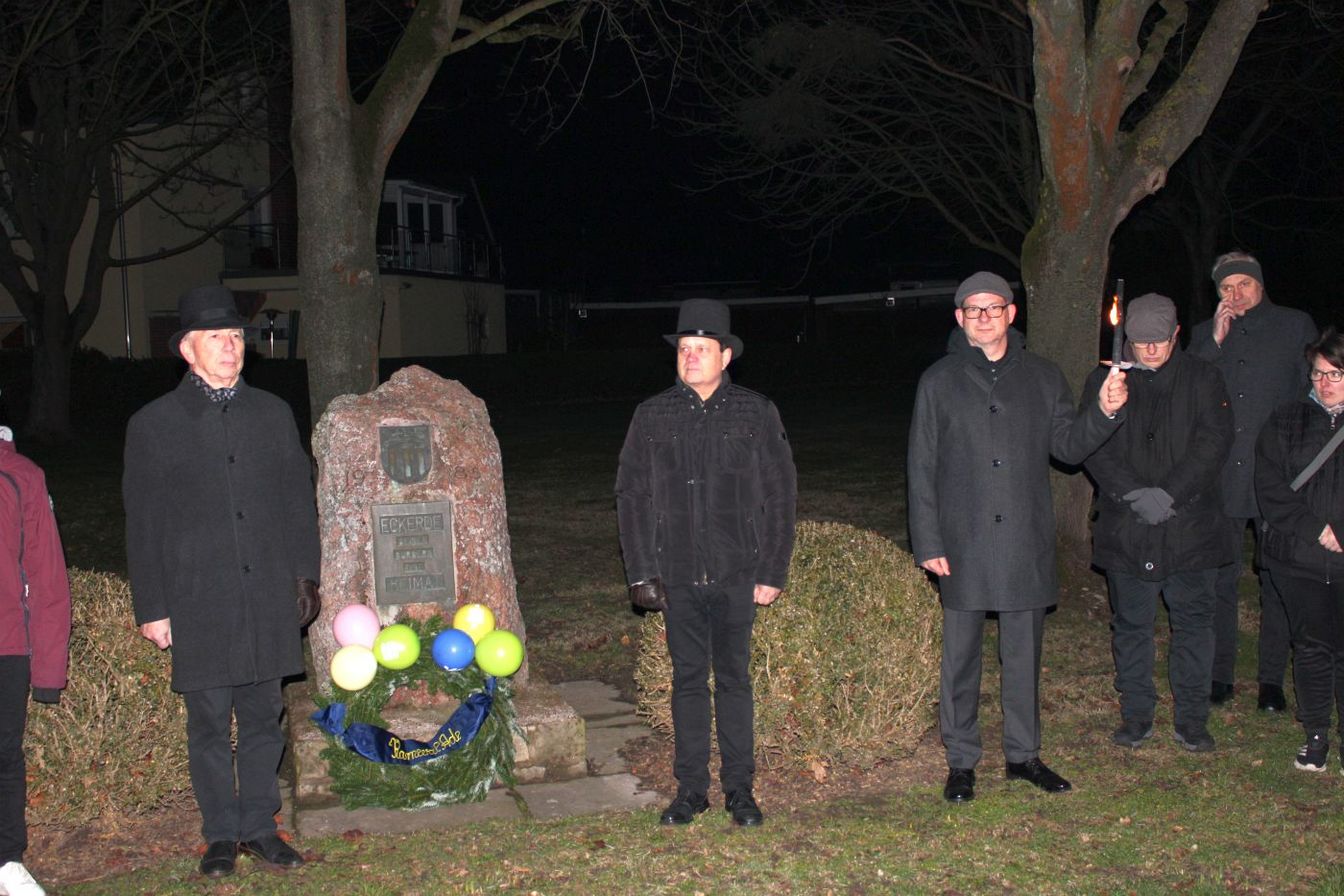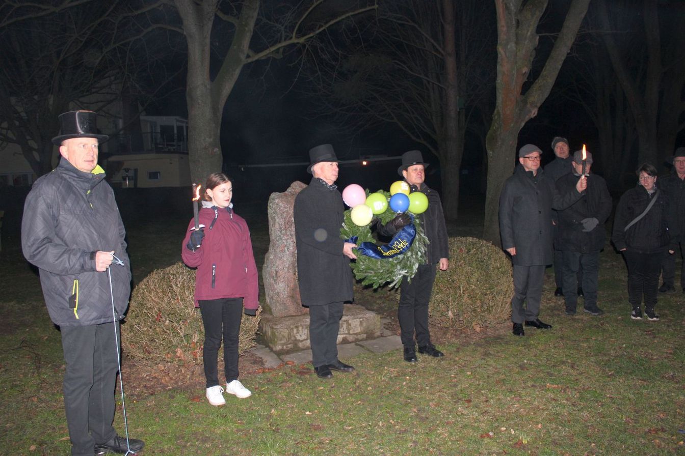 Zum festen Brauchtum gehörte daher zunächst das symbolische Auswaschen der Geldbörsen im von Heimburg’schen Hausgraben am Rittergut – ein augenzwinkernder Hinweis auf die närrischen Ausgaben der vergangenen Wochen. Anschließend wurde am Eckerder Heimatstein ein Schleifenkranz niedergelegt – als Zeichen des Abschieds und in Erinnerung an die zurückliegende Session.