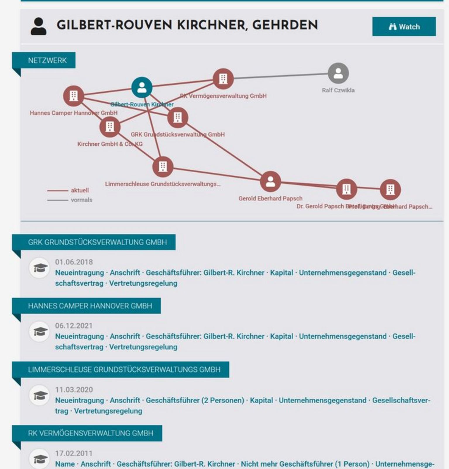 Eine der GmbHs fällt nach der Pressemitteilung der Grünen und dem Hinweis von Inga Behre besonders auf: In der "GRK Grundstücksverwaltung GmbH" mit Sitz am Weidendamm in Hannover sind Gerold Papsch und der Gehrdener Gilbert-Rouven Kirchner die Geschäftsführer. Auch zu Kirchner werden vier GmbHs aufgezeigt, unter anderem mit Sitz am Weidendamm in Hannover. In zwei der vier Kirchner-GmbHs ist laut der Firmen-Daten-Webseite auch Gerold Papsch involviert.
