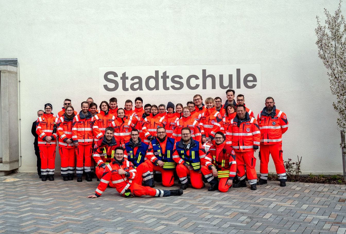 Die Lehrgangsteilnehmenden lernen auch all die hunderte Objekte kennen, die auf einem Gerätewagen Sanität und einem Gerätewagen Betreuung verlastet sind: aufblasbare Zelte, medizinisches Gerät, Verbrauchsmaterial, Zeltheizungen, Leuchtmittel, Decken und vieles mehr. Das Ausbildendenteam um Leiter Jonas Tumbrinck stammt aus allen drei Ortsverbänden. Ausbildende und Teilnehmende sind freiwillig in ihrer Freizeit dabei; der jüngste ist 17 Jahre alt, der Älteste weit in den Fünfzigern. Sie legen Leitungen, nehmen Generatoren in Betrieb, bauen Zelte auf und lernen die Basics der Ladungssicherung. All das tun sie zwei Wochenenden lang, bis zum letzten Sonntag im März: Vormittags richten sie noch zu Trainingszwecken eine Betreuungsstelle mit Feldbetten in der Wunstorfer Stadtschule ein. Mittags geht es dann nach Bad Nenndorf. Der Lehrgang mit Teilnehmenden und Ausbildenden wird durch weitere Ehrenamtliche verstärkt. Der Einsatzzug Sanität und Betreuung ist bereit mit seinen zwei Sanitätsgruppen, einer Betreuungsgruppe und seiner Führungseinheit; dem Zugtrupp.