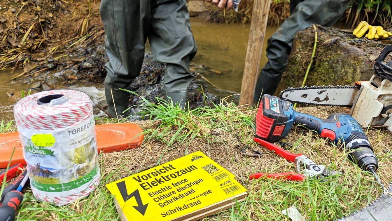 Der Biberbeauftragte Wentz baute zusammen mit Mitarbeitern des Bauhofs den Damm um 30 bis 40 Zentimeter zurück. Schon das sorgte für ein deutliches Absinken des Wasserspiegels in den Bachläufen, unter den Brücken und in der umliegenden Kanalisation. Zusätzlich wurde eine Art elektrischer Weidezaun (Stromlitzen) auf dem Damm installiert. „Ziel ist es, dass der Biber durch leichte Stromstöße gestört und vom Ausbau des Damms abgehalten wird“, so Wentz. „Ob es gelingt oder er weitere Äste auf die Litze wirft, werden wir abwarten müssen.“ Ideal wäre, wenn der Biber einige hundert Meter weiterziehen würde. „Im Ort ist ein Biber immer problematisch, doch der Ort im Regenrückhaltebecken ist ideal für die Tiere. Selbst wenn diese Biber abwandern würden, würde bald ein neuer Biber sich ansiedeln.“