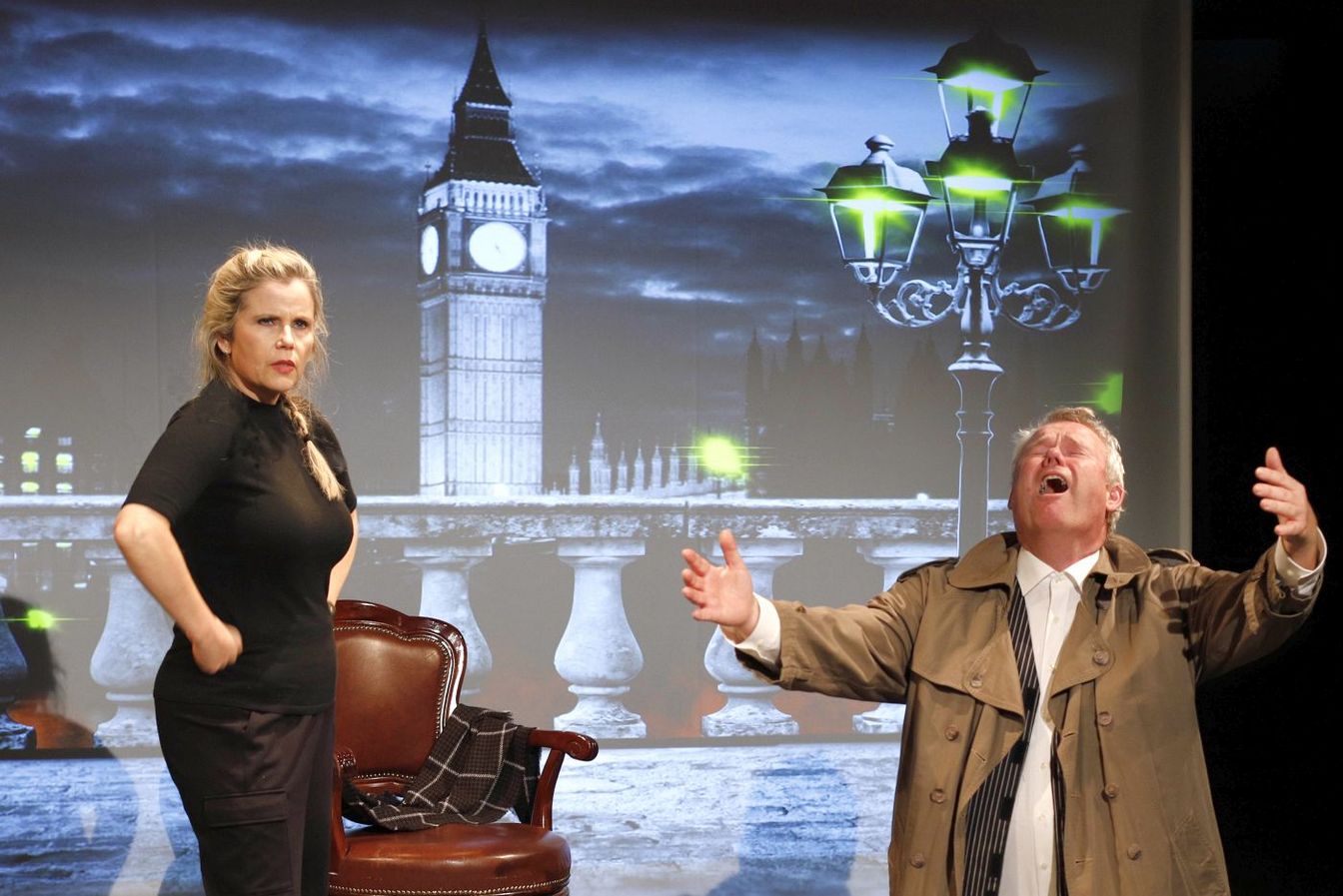 Doch während draußen die Nerven blank liegen, stehen drinnen bereits zwei bereit, die den Abend nicht kampflos hergeben: Regieassistentin Karin Tor und Requisiteur Klaus Konski. Sie kennen das Stück in- und auswendig – jeden Satz, jede Geste, jeden Effekt. Also: Warum nicht einfach selbst spielen?