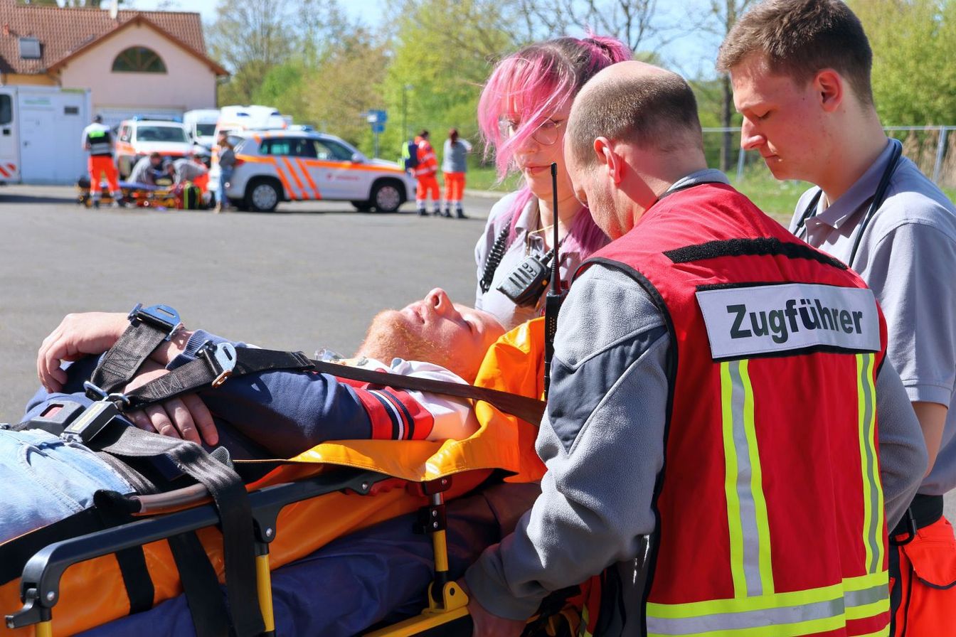 RUD-Leiterin Kathrin Blacha ist zufrieden; auch mit den anderen Trainingstrupps, die verschiedene Szenarien durchlaufen. Gemeinsam mit dem Übungsleiter René Dreier hat sie sich auf Übungen konzentriert, die den Einsatzalltag des Ortsverbands Deister widerspiegeln. „Es sind oft bunt gemischte Fälle, die uns zum Beispiel bei einem Schlagermove in Hamburg oder anderen Events beschäftigen“, sagt Kathrin. Schnittwunden gehören dazu, aber auch Frakturen, Krampfanfälle und die Folgen von zu viel Alkohol oder zu wenig Sonnenschutz. All dem begegnen die ehrenamtlich Helfenden in Teamarbeit. Auch die muss geübt werden.