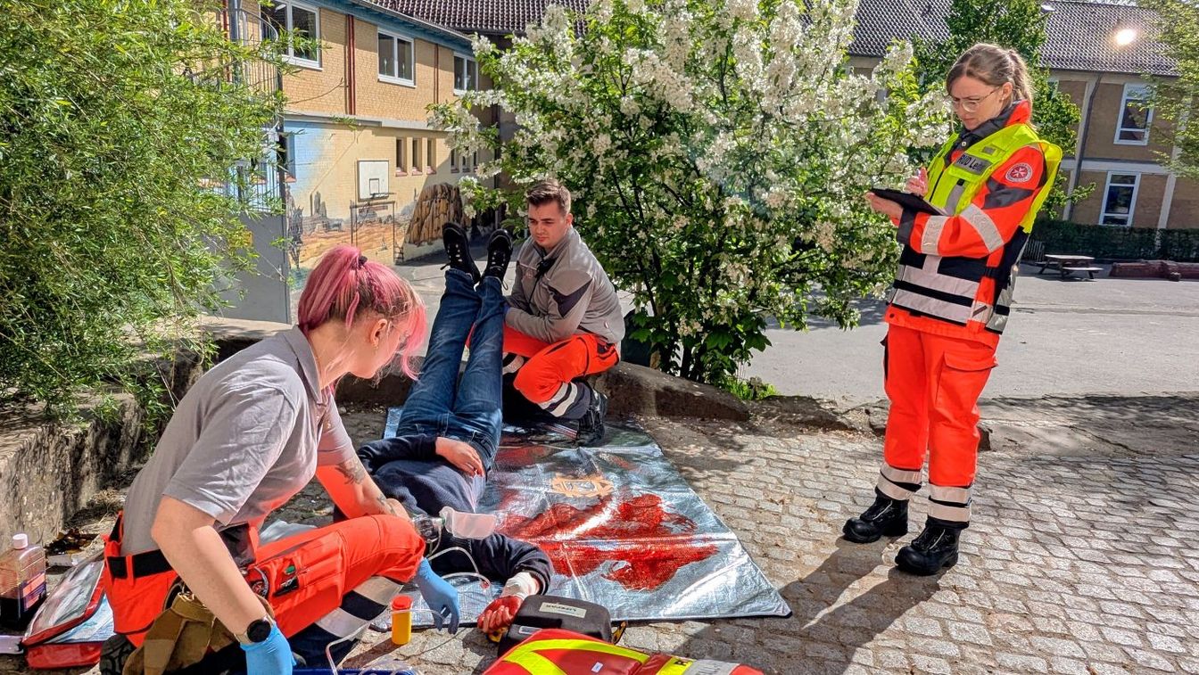 Ronnenberg/Gehrden. Rote Farbe bedeckt die Hand des jungen Mannes, der hilflos auf dem Hof der Grundschule Ronnenberg liegt. Zwei Einsatzkräfte bemühen sich um ihn. Was sie tun, soll im Ernstfall Leben retten. Hier, in diesem Moment, geht es ums Trainieren. Der Mann ist kein Unfallopfer, sondern Akteur in einer Realistischen Unfalldarstellung (RUD). So nennen Hilfsorganisationen ein Übungsszenario für ihre Einsatzkräfte, das nah an der Wirklichkeit gestaltet ist. An diesem Tag ist die Grundschule am Ronnenberger Kirchhügel einer von vier Schauplätzen für ein Einsatztraining des Johanniter-Ortsverbands Deister. Insgesamt sind rund 40 ehrenamtlich aktive Menschen daran beteiligt. Auch Johanniter aus Wunstorf und Langenhagen unterstützen die Ronnenberger.