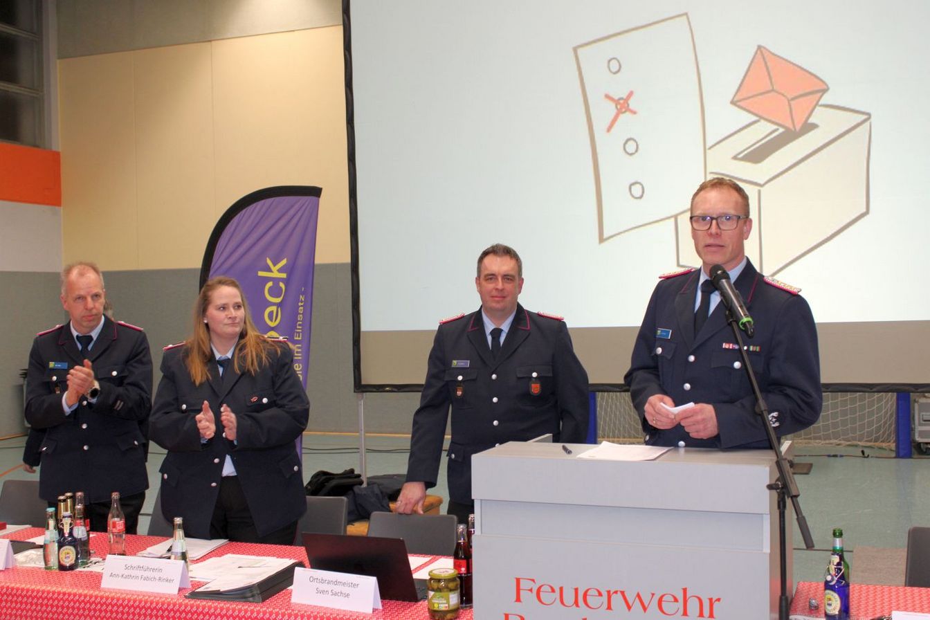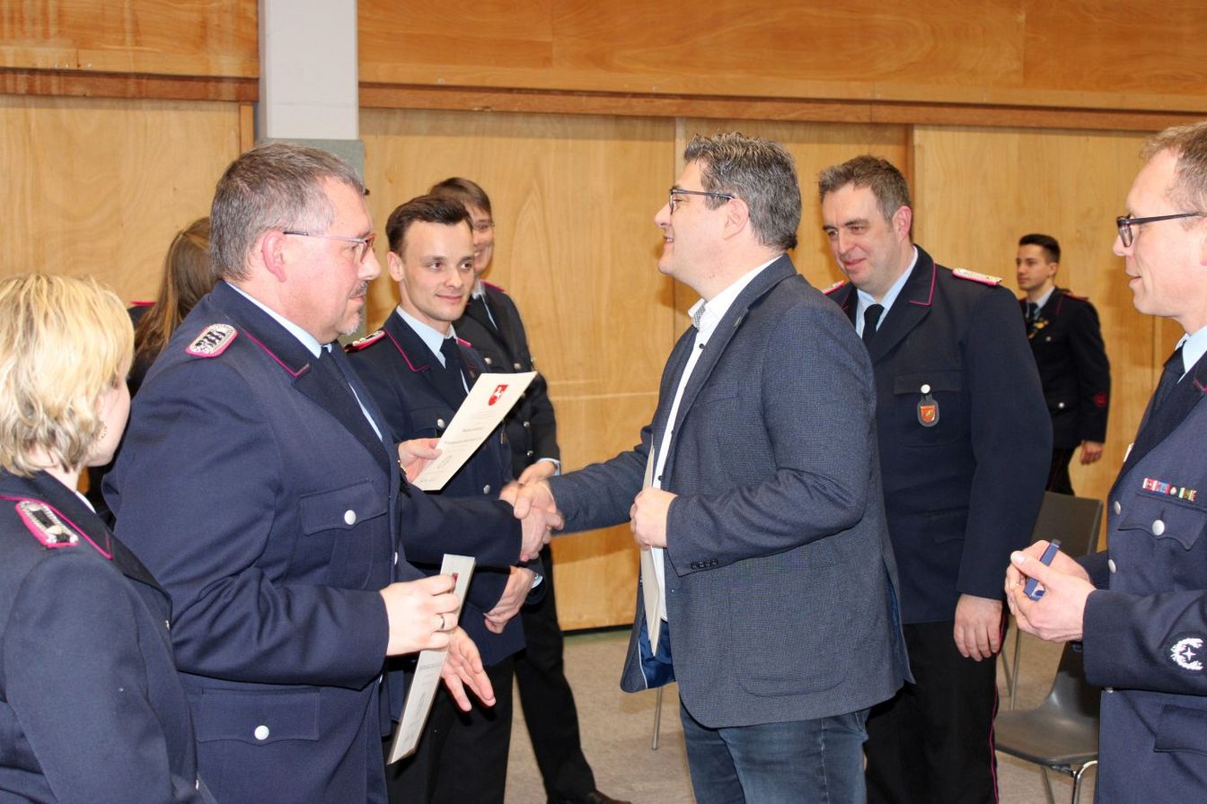 Bürgermeister Ingo Klokemann zeigte sich beeindruckt von den Berichten der Kameraden. „Dies zeigt, wie viel Arbeit in der Feuerwehr steckt und was abseits der Einsätze alles geleistet wird.“ Klokemann lobte die Jugendarbeit und dankte den Kameraden für ihr ehrenamtliches Engagement. In einer Zeit, in der Menschen über Einsamkeit klagten und die Gesellschaft auseinanderzugehen scheine, sei Feuerwehr ein Garant für ein Miteinander und ein lebendiges Ortsleben.
