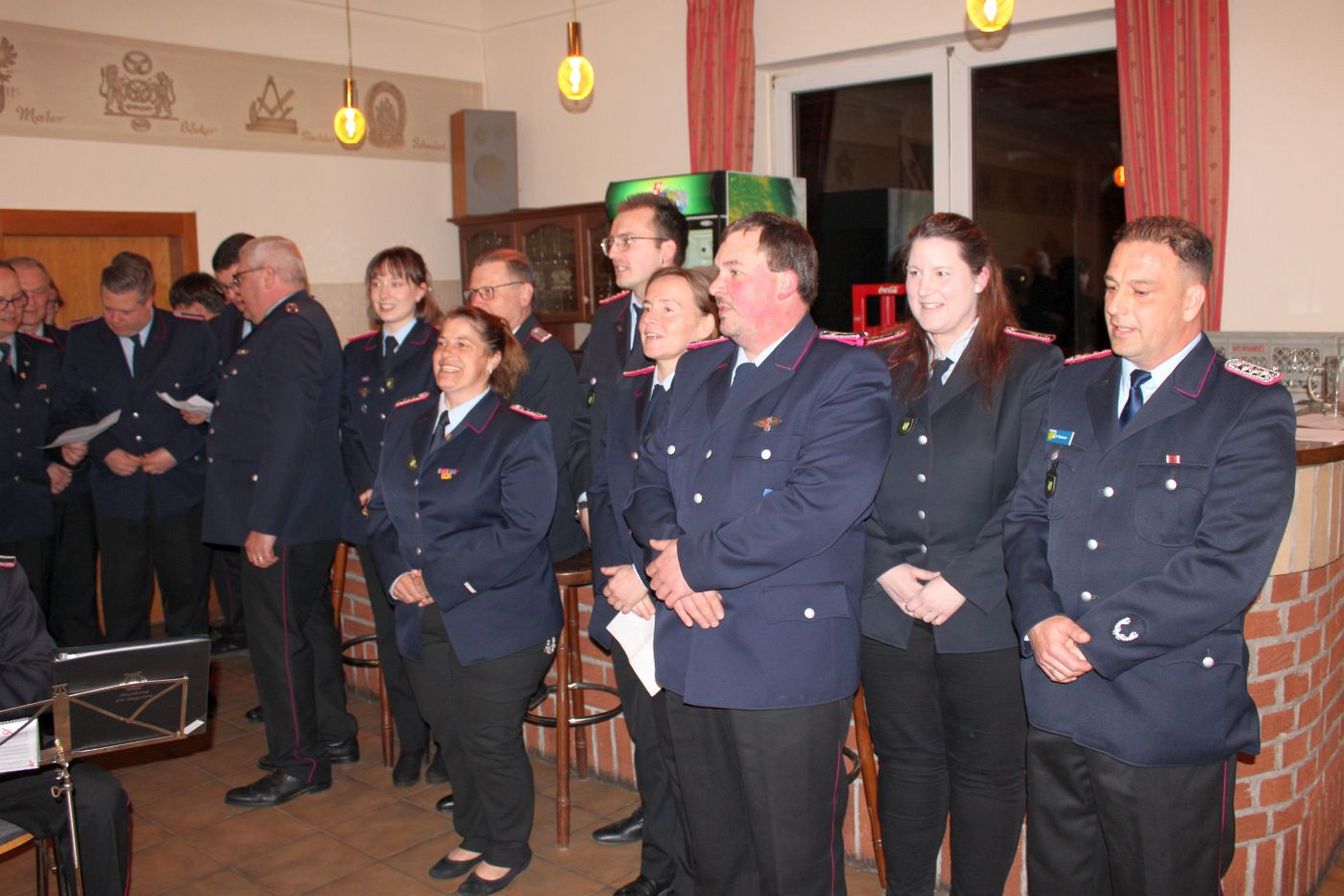 Erst am 1. Dezember haben Ortsbrandmeister Peter Theesen und seine Ehefrau Mareike Theesen als stellvertretende Ortsbrandmeisterin ihre Ämter übernommen. Zuvor hatte Jörg Ommen das Amt des Ortsbrandmeisters abgegeben, nachdem er zum Gemeindebrandmeister ernannt worden war.