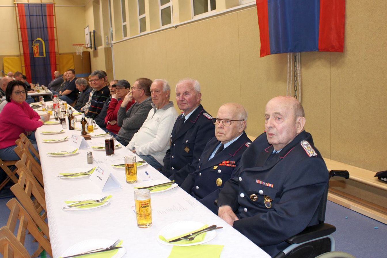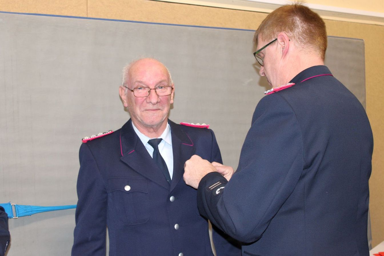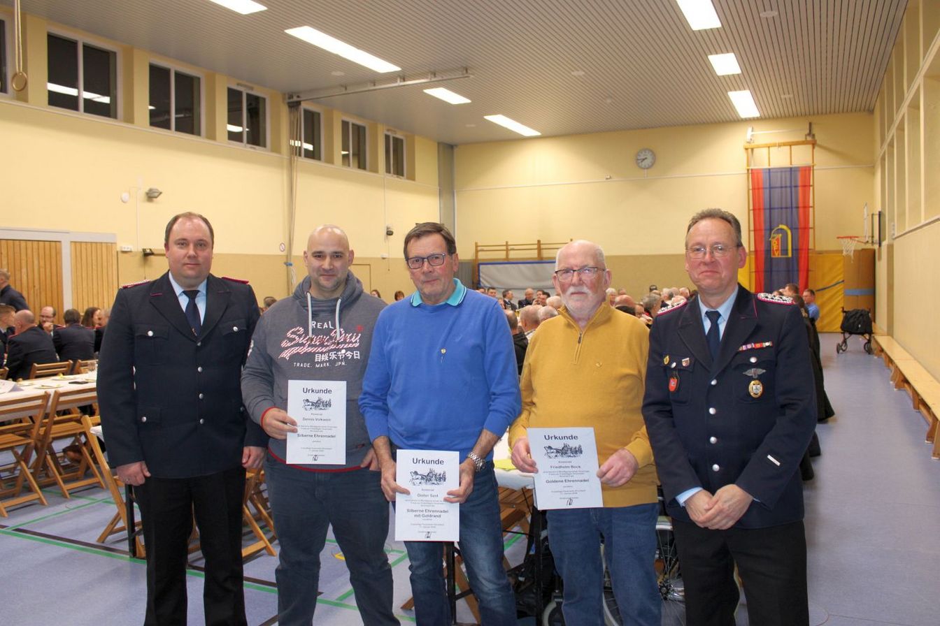 Ein zentraler Punkt der Versammlung waren die Ehrungen für langjährige Mitgliedschaften. Für 25 Jahre Feuerwehrzugehörigkeit wurde Dennis Volkwein geehrt. Im aktiven Bereich erhielten Markus Plackner und Tobias Hielscher die Ehrung für 25 Jahre. Für 40 Jahre Mitgliedschaft wurde Dieter Szot ausgezeichnet, im aktiven Bereich Jörg Trampenau. Auf 50 Jahre Feuerwehrdienst blickt Friedhelm Bock zurück.