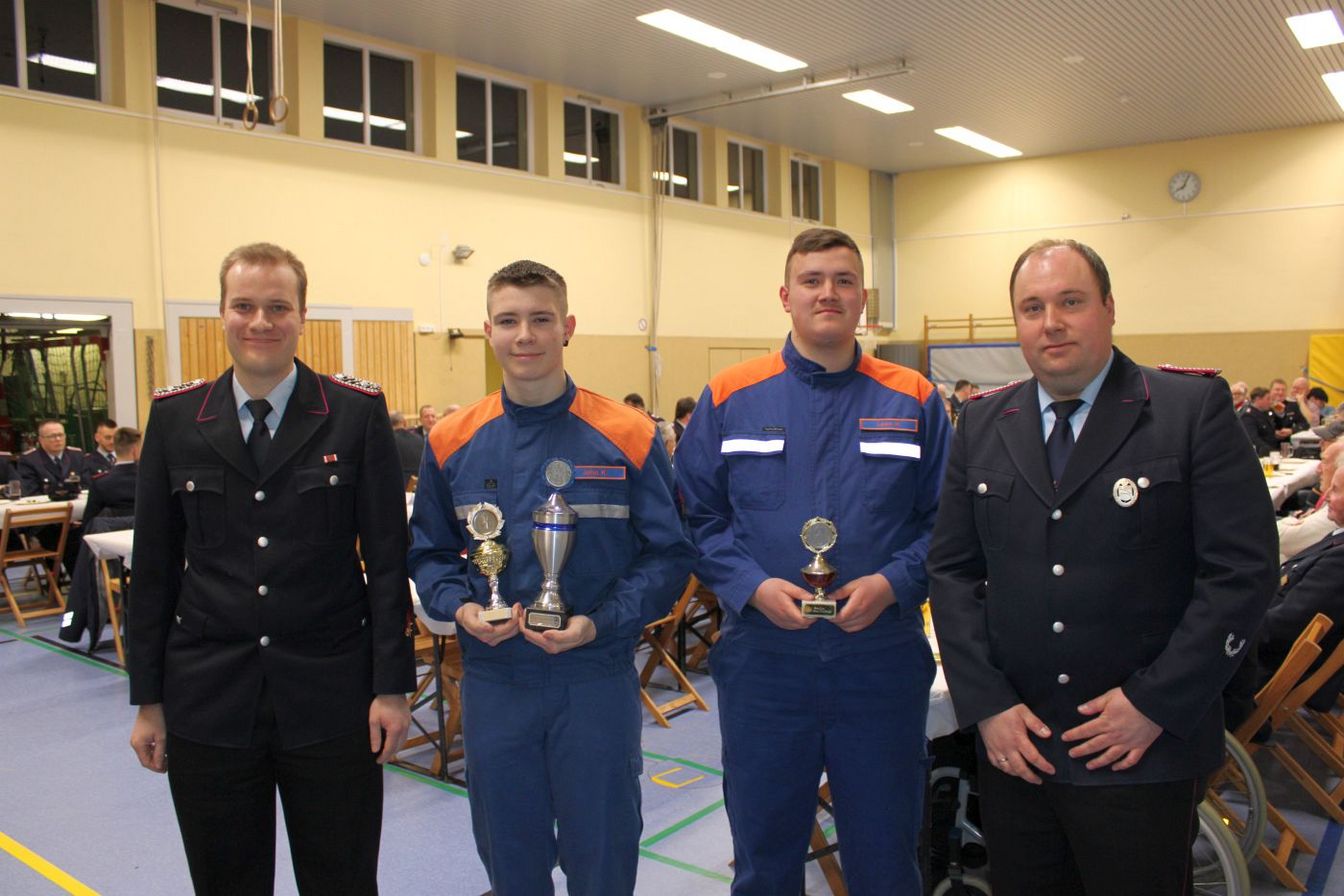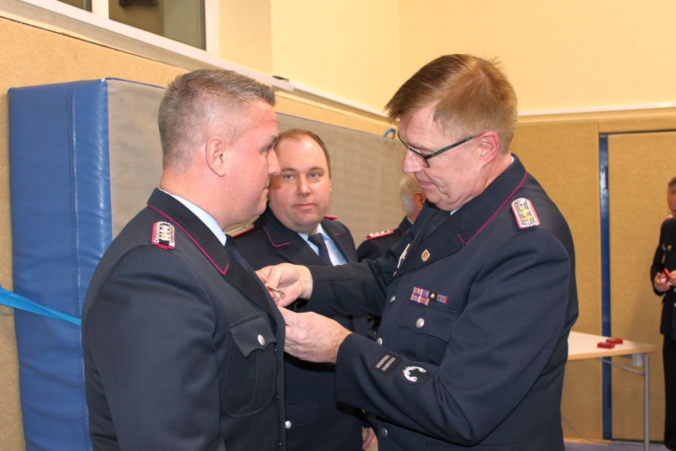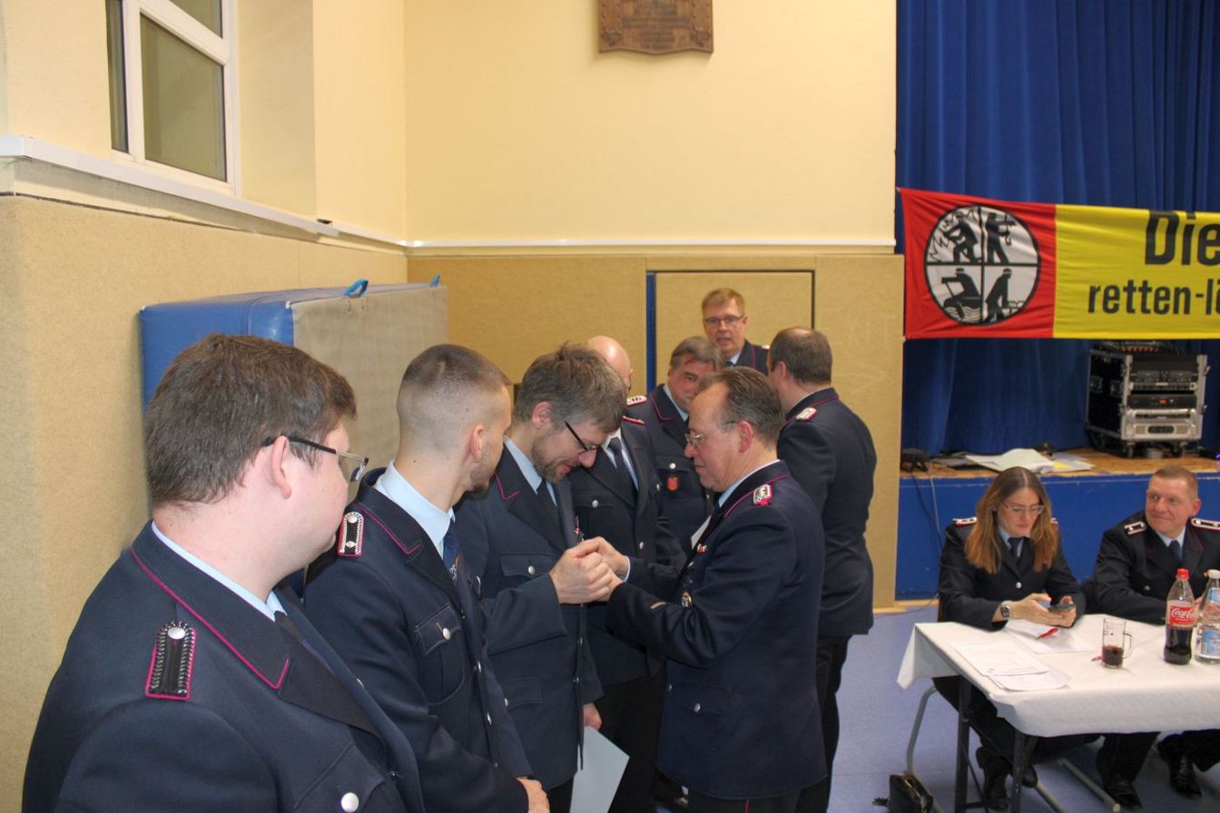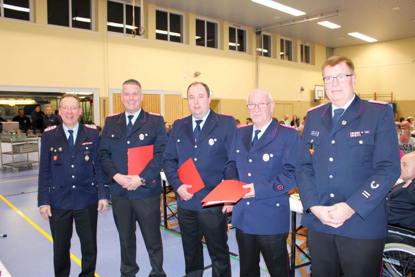 Befördert wurden René Gentzsch zum 1. Hauptfeuerwehrmann und Nils Krügener zum Oberlöschmeister. Kai Wullkopf ist nun Hauptlöschmeister und Robin Voshage Hauptfeuerwehrmann. Björn Georg Matthies wurde zum Feuerwehrmann befördert.