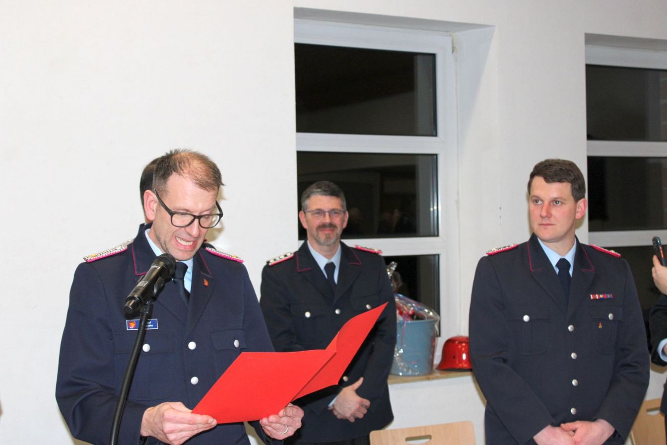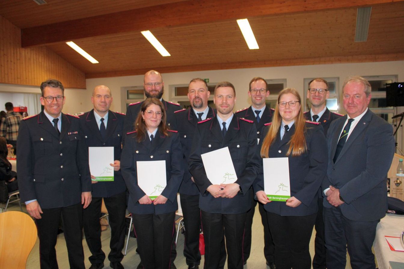 Mehrere Mitglieder konnten sich über Beförderungen freuen. Lorna Vielguth wurde zur Feuerwehrfrau, Sascha Vielguth zum Feuerwehrmann und Jessica Zimmermann zur Oberfeuerwehrfrau befördert. Hendrik Schünhof ist nun 1. Hauptfeuerwehrmann, Tom Tebbe Löschmeister und Gerrit Schlette Hauptlöschmeister.