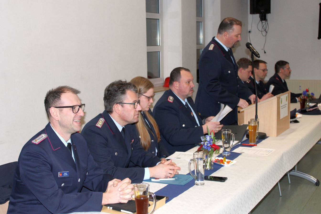 Die Ortsfeuerwehr zählt aktuell 259 Mitglieder, darunter 35 Einsatzkräfte. Jugend- und Kinderfeuerwehr wurden in den Berichten ebenfalls gewürdigt.