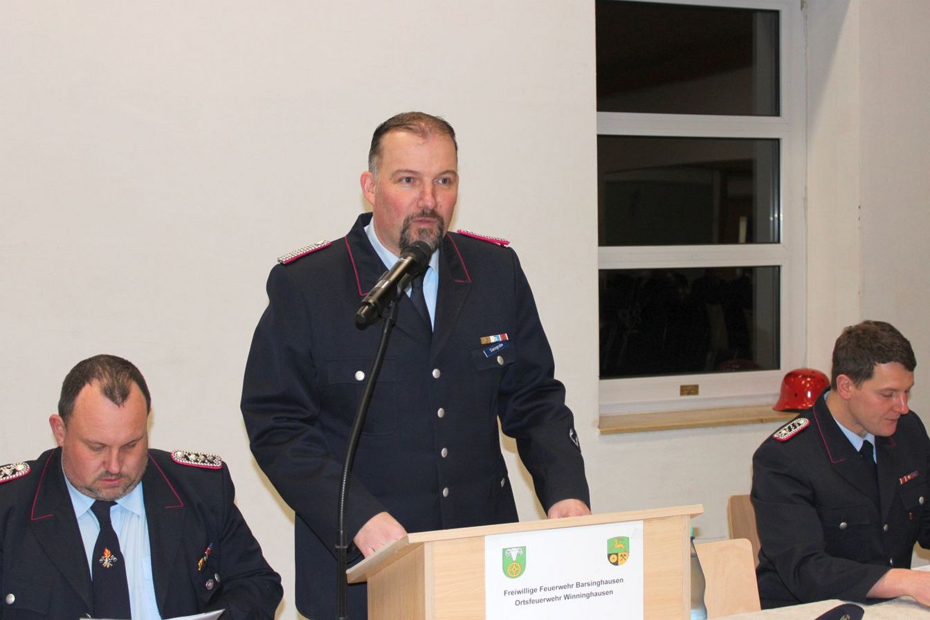 Stadtbrandmeister Philip Prinzler berichtete von über 500 Einsätzen im letzten Jahr im Stadtgebiet und erinnerte an den Brand im Nablo und den großen Garagenbrand in Egestorf. „Die Zusammenarbeit unter den Ortswehren ist sehr gut.“ Damit dies so bleibe, müsse weiterhin in entsprechende Ausrüstung investiert werden. Für Winninghausen, eine Ortswehr mit Grundausstattung, seien 25 Einsätze eine stolze Zahl und zeigten, wie wichtig die Wehr sei. „Ich danke allen 5.033 Mitgliedern in der Stadtfeuerwehr für ihren Einsatz für die Sicherheit der Bürger.“