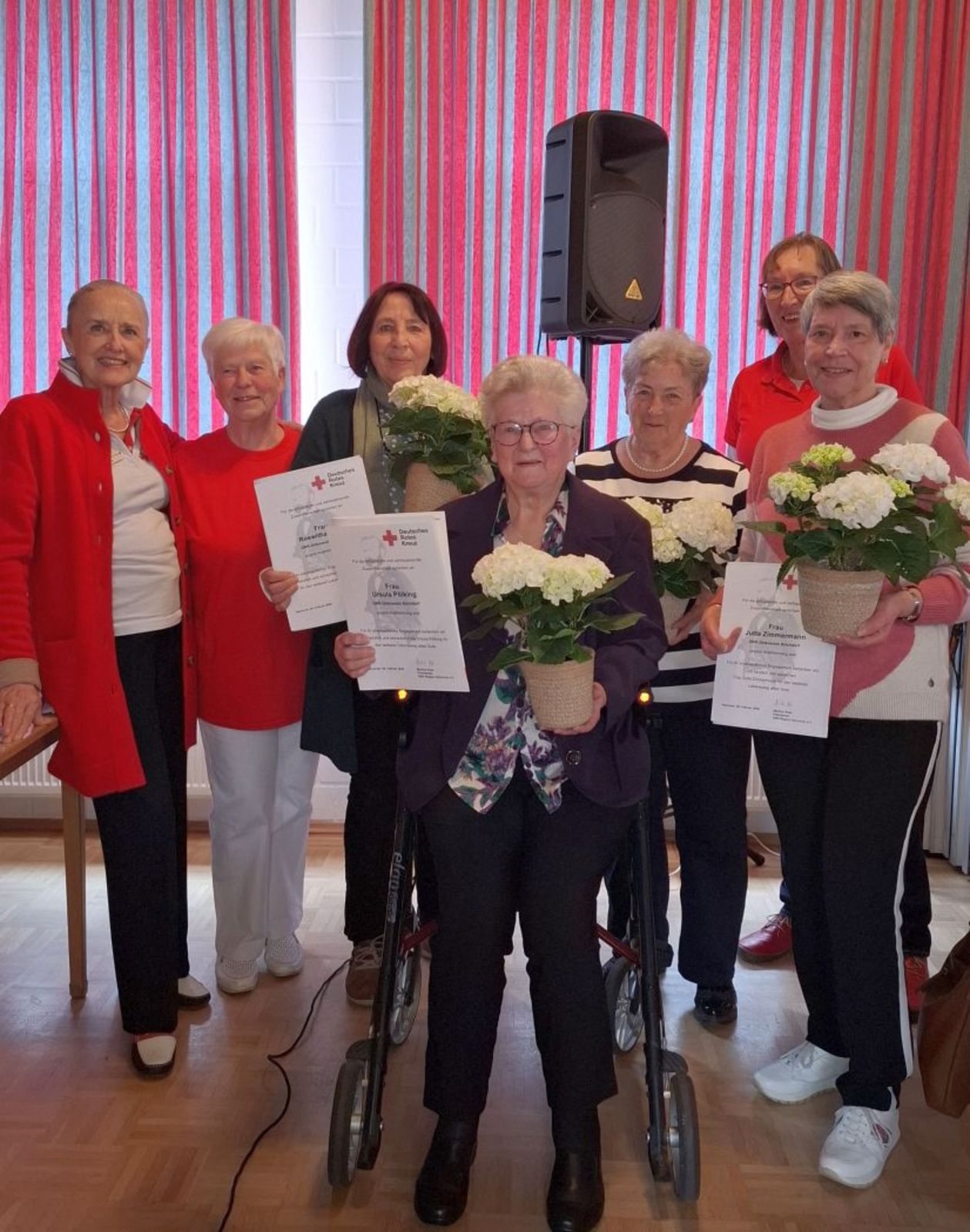 Ein weiterer wichtiger Bestandteil der Veranstaltung waren Ehrungen und Verabschiedungen: Insgesamt sieben Mitglieder wurden für ihre 25-jährige Zugehörigkeit zum Deutschen Roten Kreuz geehrt, vier von ihnen konnten die Auszeichnung persönlich entgegennehmen. Gleichzeitig wurden vier ehemalige Vorstandsmitglieder des DRK-Ortsvereins Kirchdorf feierlich verabschiedet und für ihr langjähriges Engagement gewürdigt.