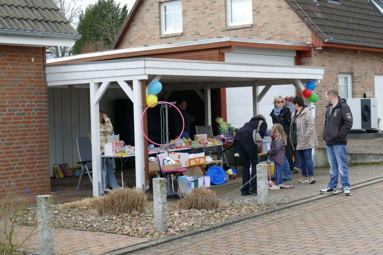 Neben den zahlreichen Flohmarktständen in den Grundstücken, Garagen und Carports hatten auch die Göxer Institutionen wieder einiges für die Tagesgäste vorbereitet. Auf dem Kinderbauernhof hatte Leiterin Anette Bunnenberg-Ihßen in einem großen Sandhaufen kleine Kristallsteine versteckt. Freudig machten sich die Kinder mit Sieben, Haken und Schaufeln auf die Suche nach den "Edelsteinen". Große Freude gab es bei der kleinen Sofie, die lautstark und stolz den ersten Fund verkündete. Auch beim Göxer Waldkindergarten gab es ein Programm für die kleinen Gäste. Es gab einen Kinderflohmarkt und am Lagerfeuer wurde Stockbrot zubereitet. Wer wollte, konnte zudem schon einen Blick in das neue Tipi werfen, dass dann beim Tag der offenen Tür am 3. Juni offiziell eingeweiht wird. Freudige Kinderaugen gab es auch bei der Ortsfeuerwehr, die das Löschfahrzeug präsentierte und die großen und kleinen Gäste mit Grillgut und Getränken versorgte. „Alle haben sich toll eingebracht und unseren Besuchern im Dorf viel geboten. Kinder, Eltern und Schnäppchenjäger hatten ihren Spaß. Danke an alle Helferinnen und Helfer“, resümierte Anja Neumann zufrieden.