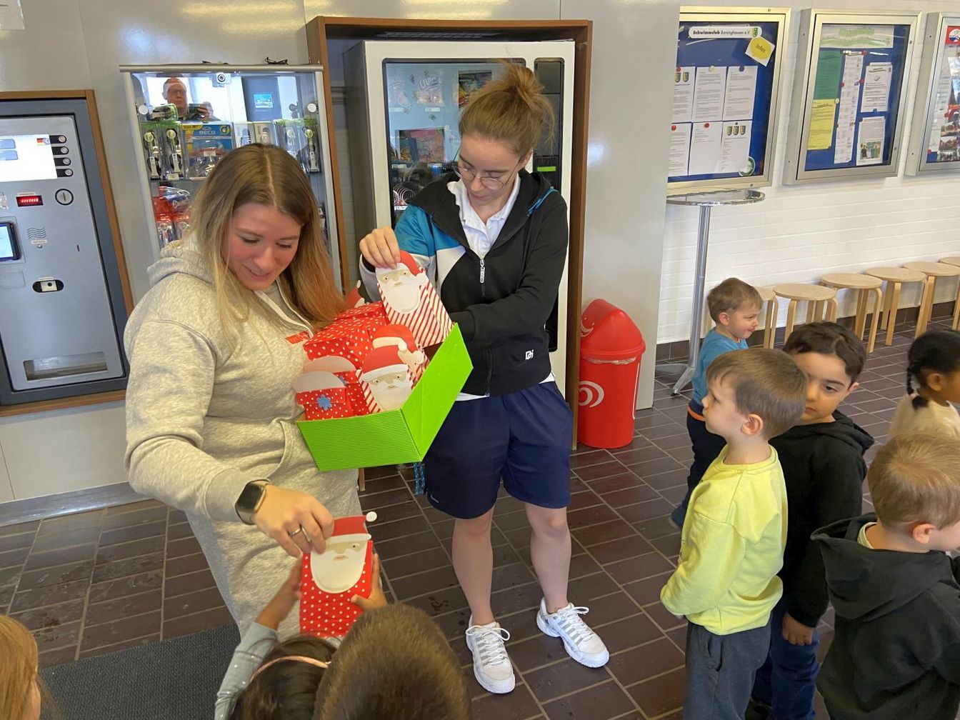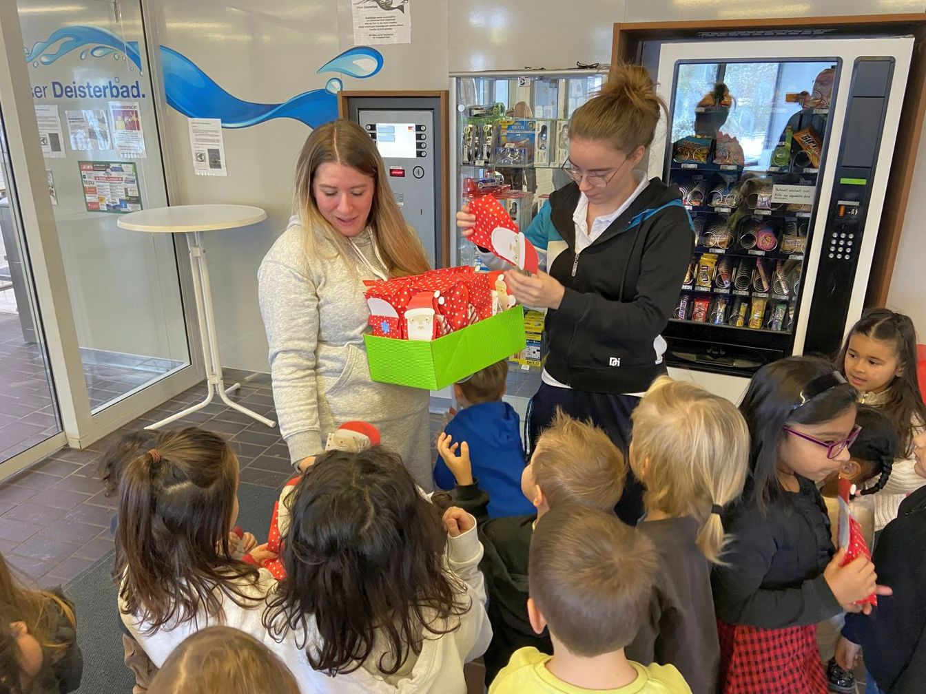 Vom Team Deisterbad haben Anabell Zimmermann und Trixi Picker die Aktion begleitet und freuen sich sehr. „Der Baum ist wieder sehr schön geworden. So kommt richtig Weihnachtsstimmung ins Deisterbad.“ Natürlich gibt es nicht nur dankende Worte aus dem Deisterbad, das Team hat für die Kinder kleine Weihnachtstüten mit Süßigkeiten und einer Ausstechform für Kekse vorbereitet.