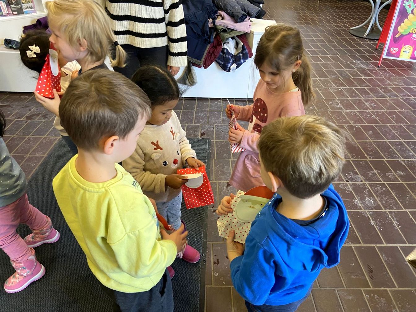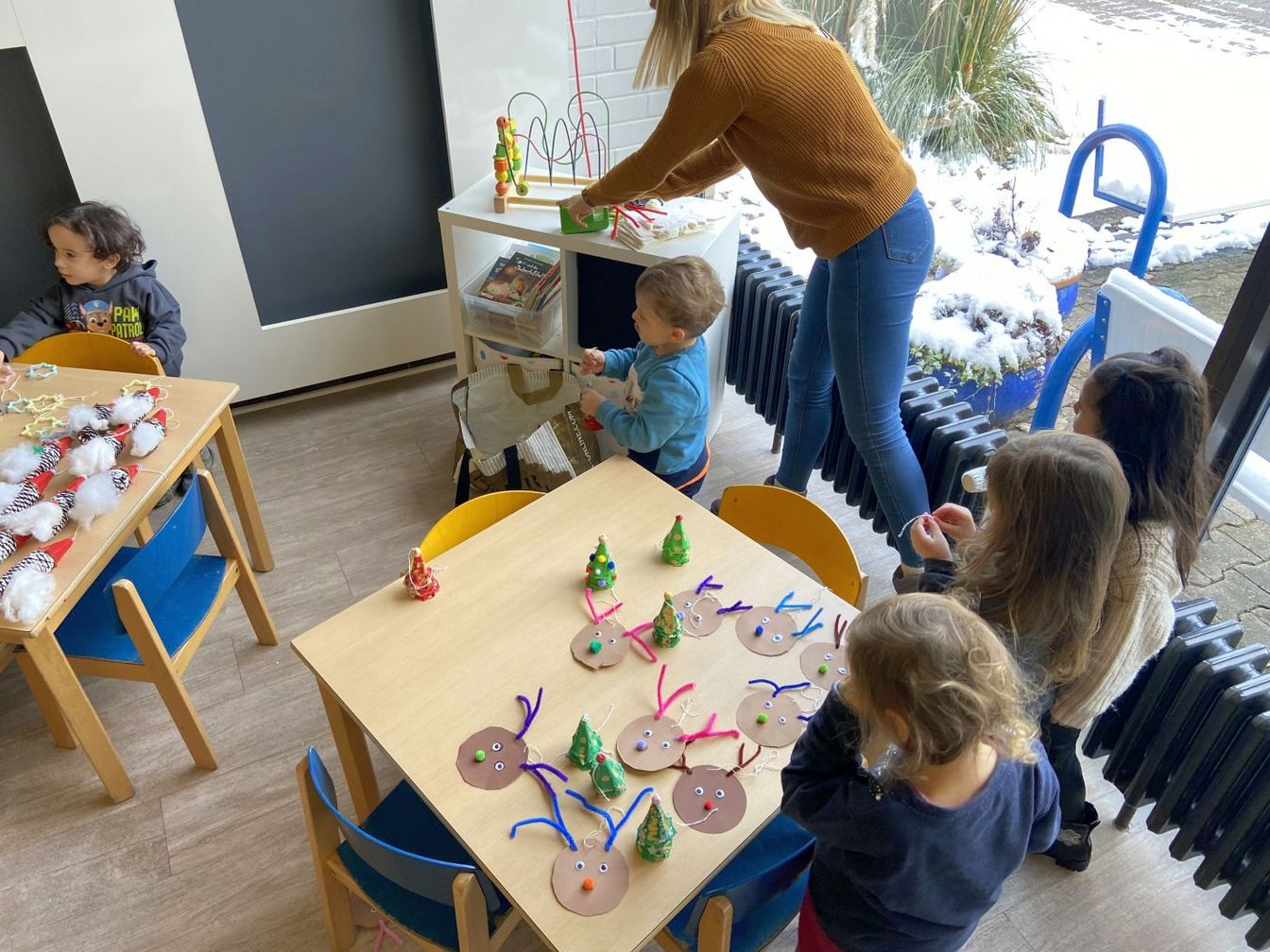 Die 20 Kinder aus der grünen Gruppe haben sich wieder richtig viel Arbeit gemacht, um eine wunderschöne Dekoration für den Weihnachtsbaum im Deisterbad zu basteln. Aus Tannenzapfen sind Weihnachtsmänner geworden, aus Eierkarton wurden Weihnachtsbäume gezaubert und aus Klopapierrollen wurden goldene und silberne Sterne und auch die Rentiere durften nicht fehlen. Für die großen Fenster im Eingangsbereich des Deisterbades wurden große Papiersterne gebastelt.