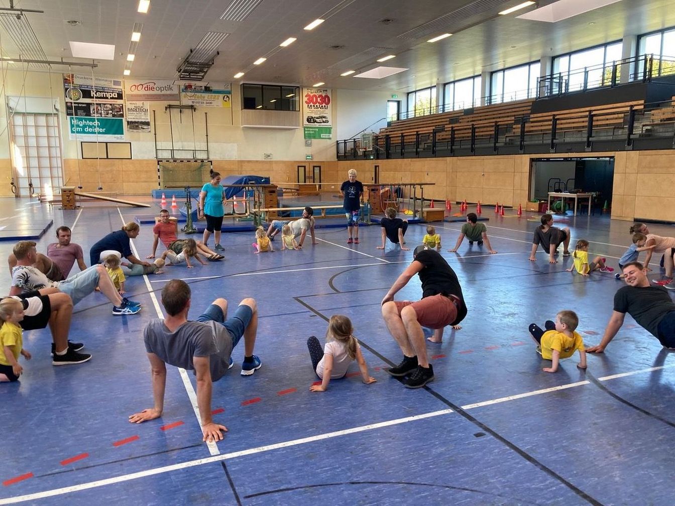 Die kleinen Sportler machen gemeinsam mit Mama oder Papa ihre ersten sportlichen Bewegungserfahrungen beim Klettern, Springen, Rollen, Balancieren, Rennen, Krabbeln, Werfen und Fangen.