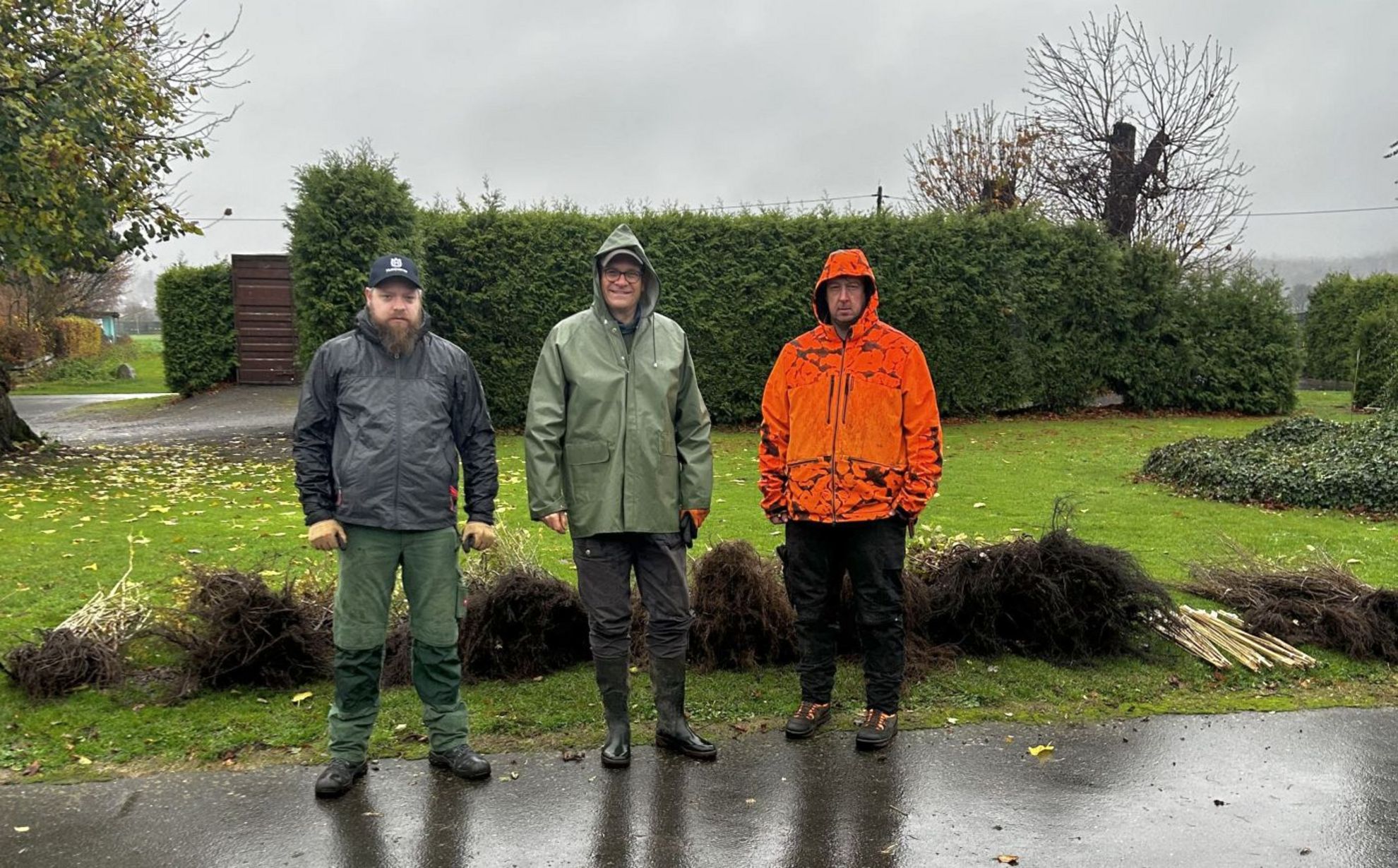 Barsinghausen. Am vergangenen Samstag hat der Hegering Barsinghausen bereits zum dritten Mal in Folge neue Hecken in der Feldmark gepflanzt. Trotz anhaltenden Dauerregens nahmen Markus Domrowe, Christian Habermann und Wolfram Klöber vom Hegering an der Pflanzaktion teil.