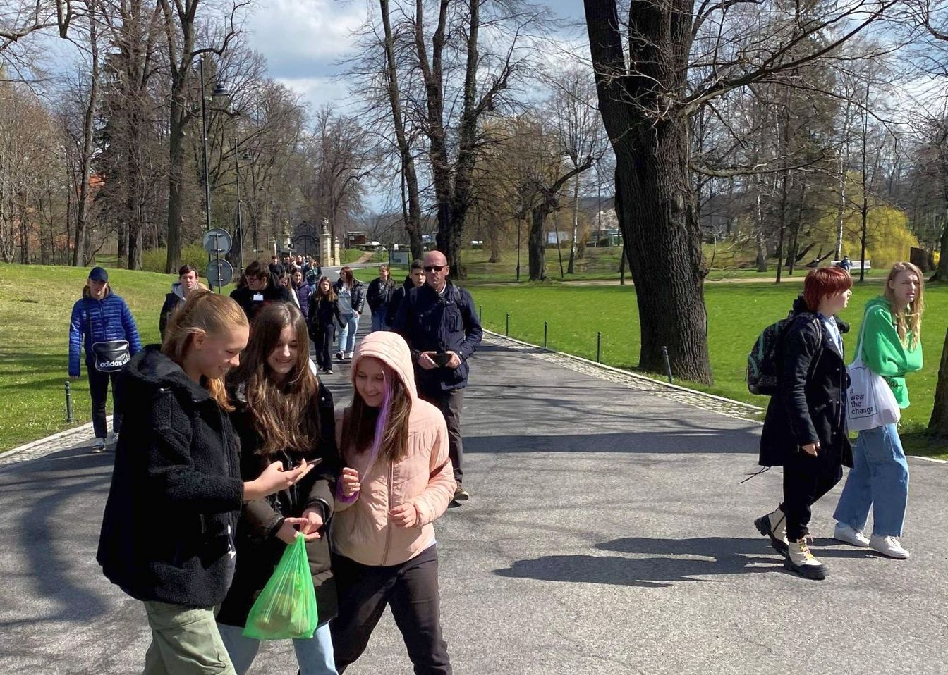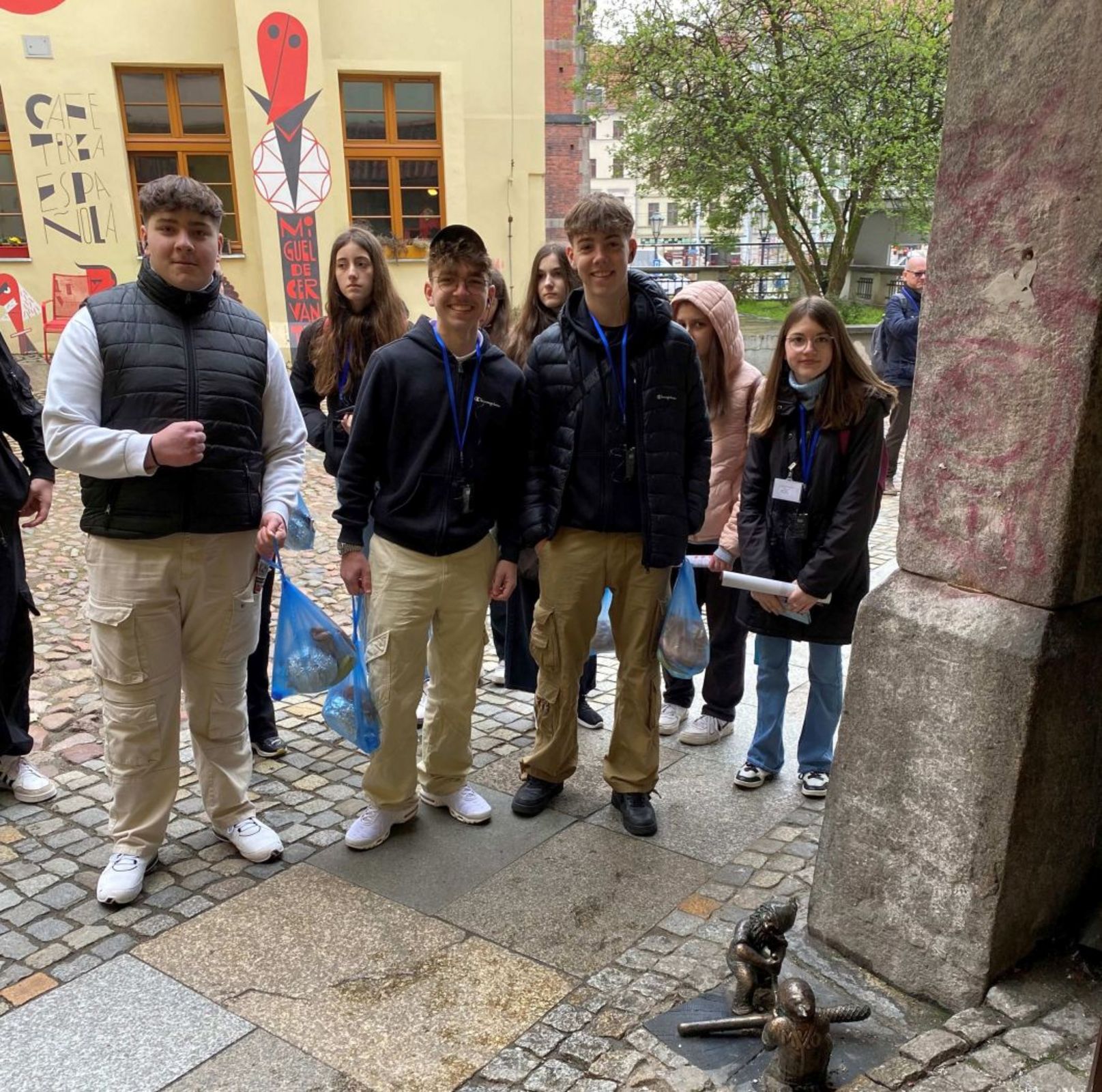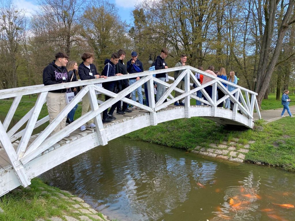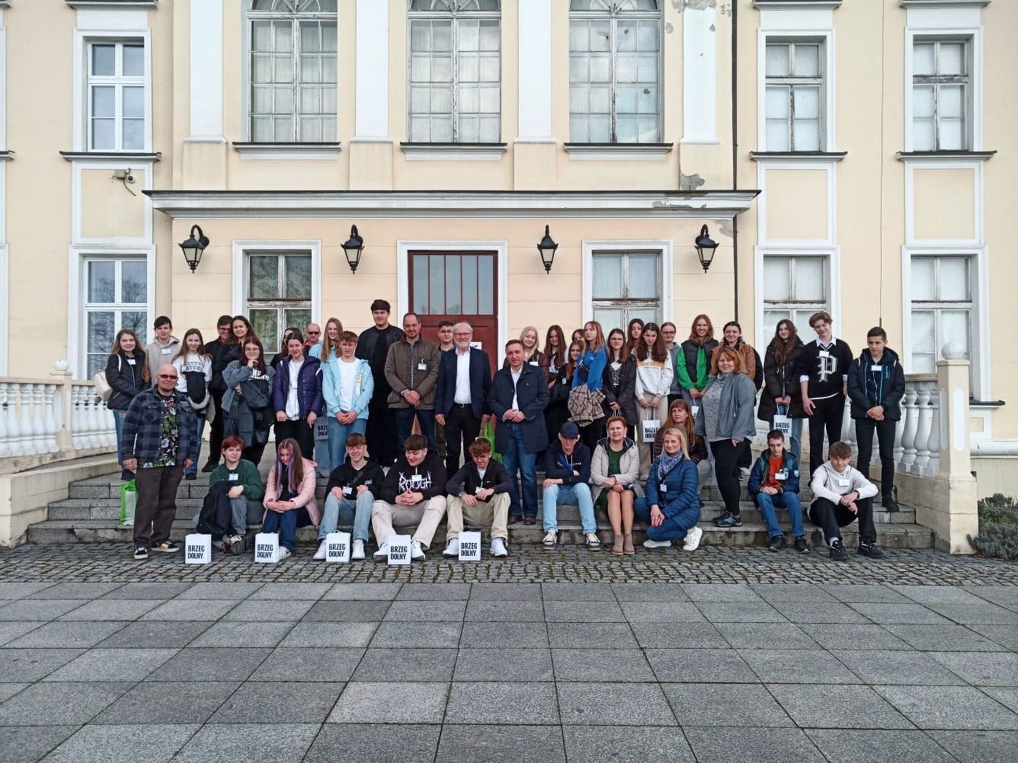 Im Vorfeld wurde von den beiden Projektleitern Magdalena Lewandowska (Brzeg Dolny) und Thorsten Franz (Barsinghausen) gemeinsam ein umfangreiches Programm ausgearbeitet, dass der deutschen Gruppe vielfältige Möglichkeiten bot, das Nachbarland und die Jugendlichen der Partnerschule näher kennen zu lernen. Nach der Ankunft am Sonntagabend ging es zunächst in das Hotel, wo die polnischen Schüler mit ihrer Klassenlehrerin und der Schulleiterin den Barsinghäuser Gästen einen herzlichen Empfang bereiteten. Am nächsten Tag stand zunächst ein offizieller Termin im Rathaus von Brzeg Dolny an, wo der Bürgermeister Paweł Pirek und weitere Vertreter und Vertreterinnen der Stadt und der Partnerschule die Gruppe aus Barsinghausen die deutschen und polnischen Jugendlichen empfing, um über das gemeinsame Projekt zu sprechen. Bei einer Führung durch das Rathaus, das im Schloss Dyhernfurth beheimatet ist, wurde die wechselvolle Geschichte des Gebäudes und der Stadt Brzeg Dolny beleuchtet. Im Anschluss ging es durch den Schlosspark zur Partnerschule, wo die Jugendlichen sich gegenseitig Redewendungen in der jeweils anderen Sprache beibrachten.