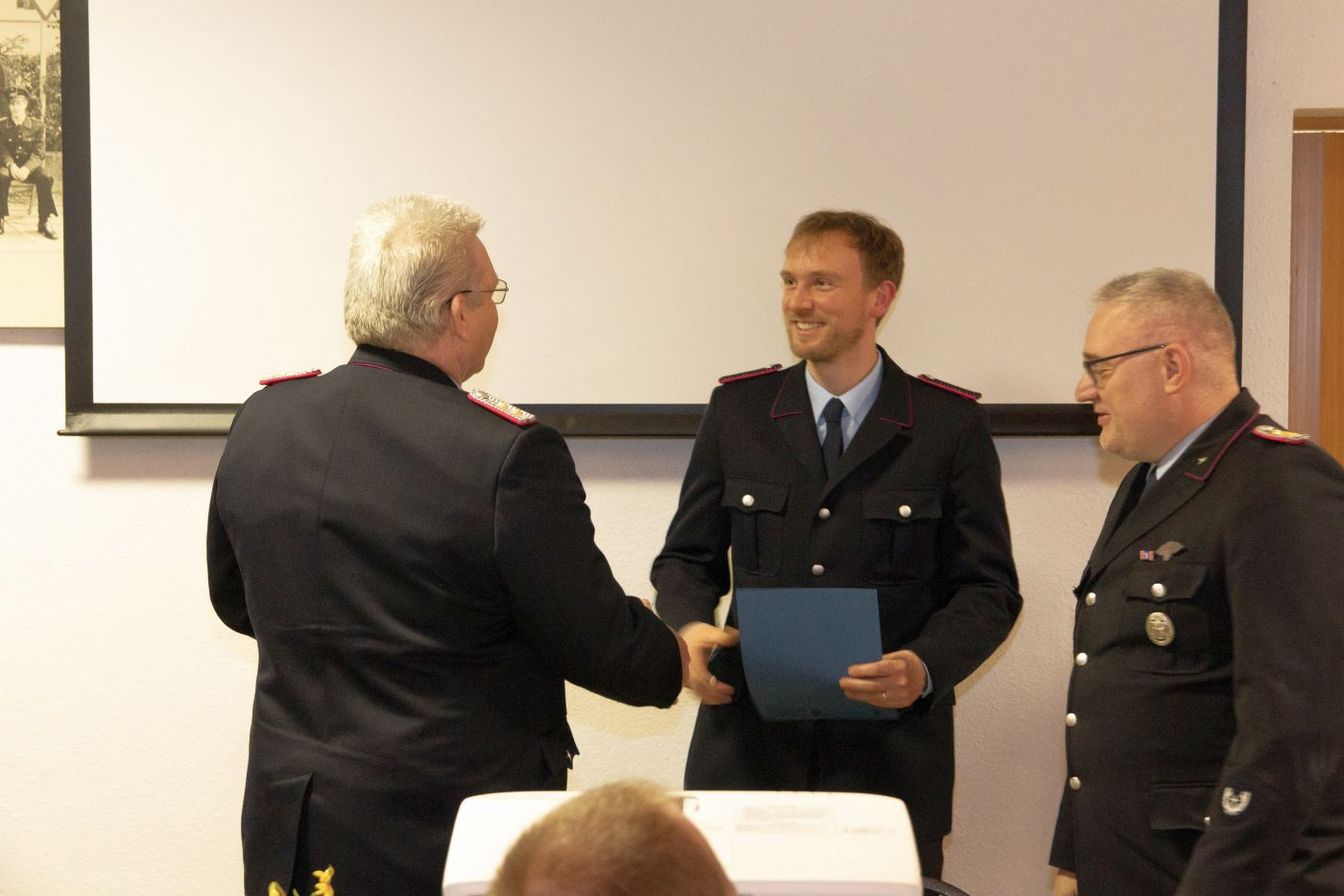 Im Anschluss erfolgten die Beförderungen der Kameradinnen und Kameraden durch den Stadtbrandmeister Gunnar Scheele. Henrik Rühmkorf hat die modulare Truppmannausbildung erfolgreich bestanden und wurde zum Feuerwehrmann befördert. Hauptfeuerwehrmann Arne Reinecke wurde zum Löschmeister befördert. Auch Tim Baxmann wird fortan als Feuerwehrmann die aktiven Kameradinnen und Kameraden der Feuerwehr Vörie unterstützen, konnte jedoch nicht an der Versammlung teilnehmen.