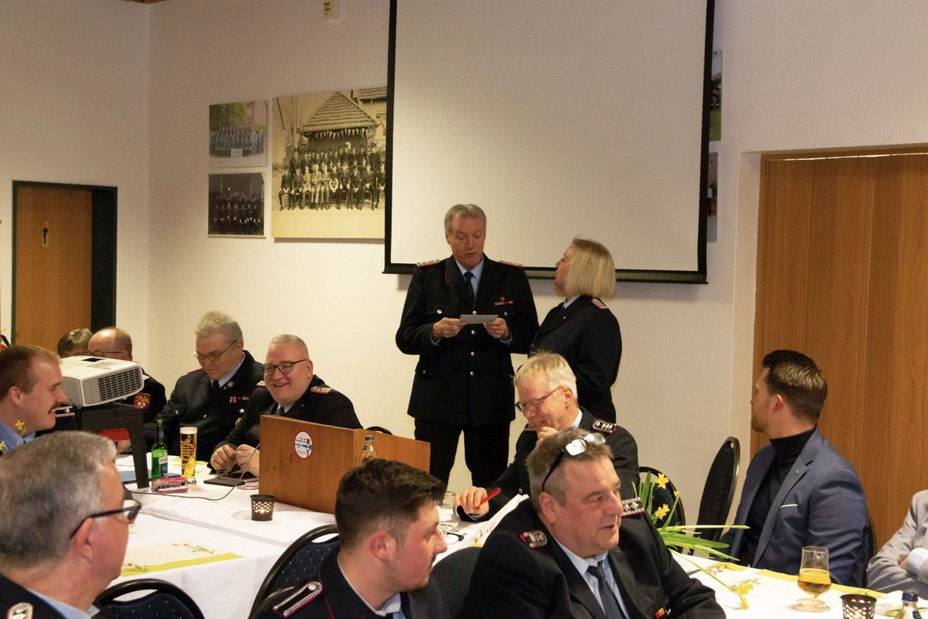Nach dem Jahresrückblick folgten die Wahlen der Funktionsträger innerhalb der Feuerwehr. Die Frage nach Wahlvorschlägen wurde zumeist mit „Vorschlag auf Wiederwahl“ kommentiert. Es haben sich daher keine nennenswerten Änderungen in der Organisation der Feuerwehr Vörie ergeben.