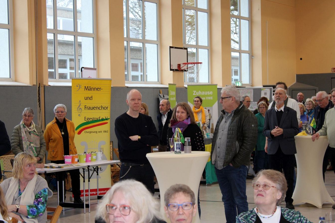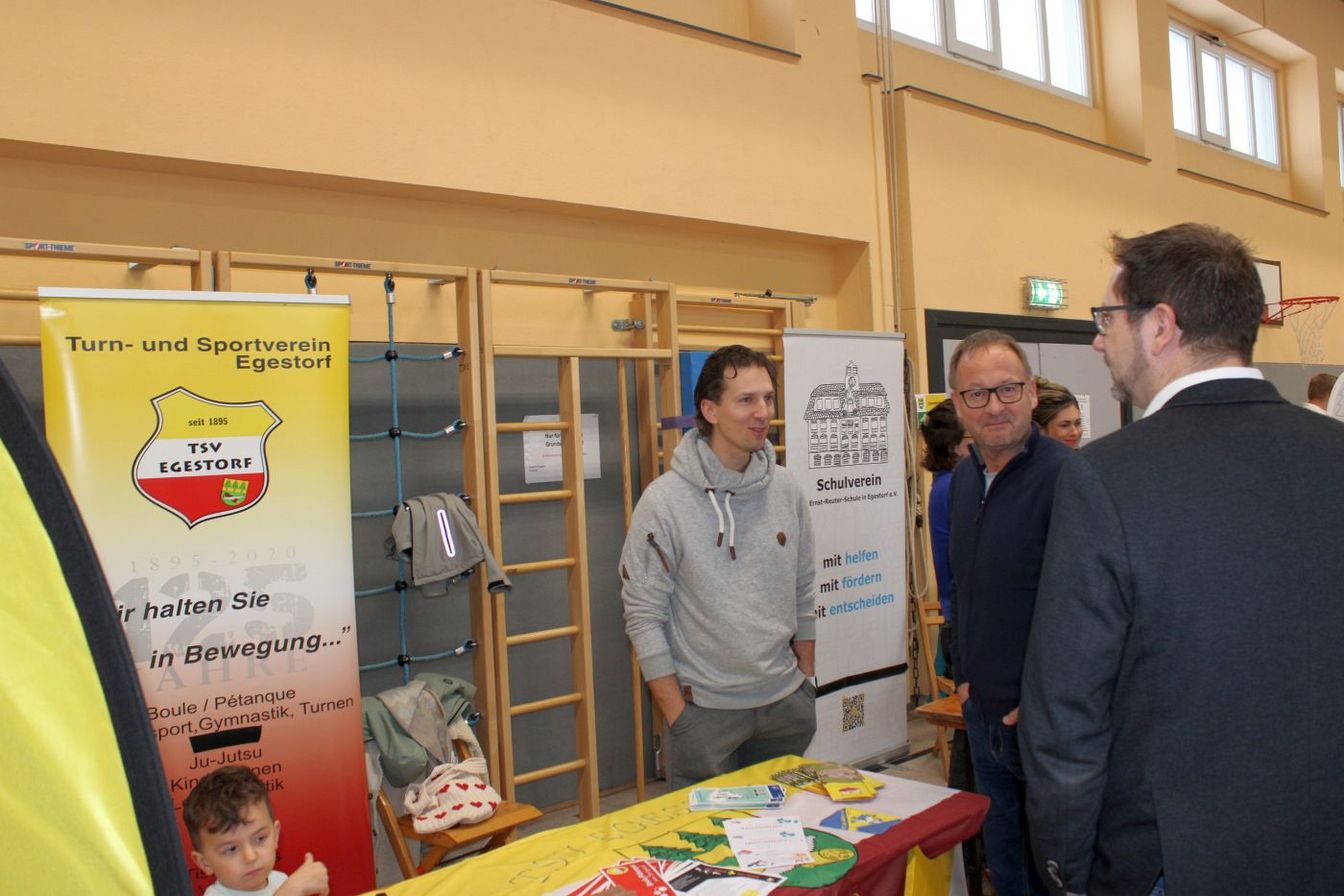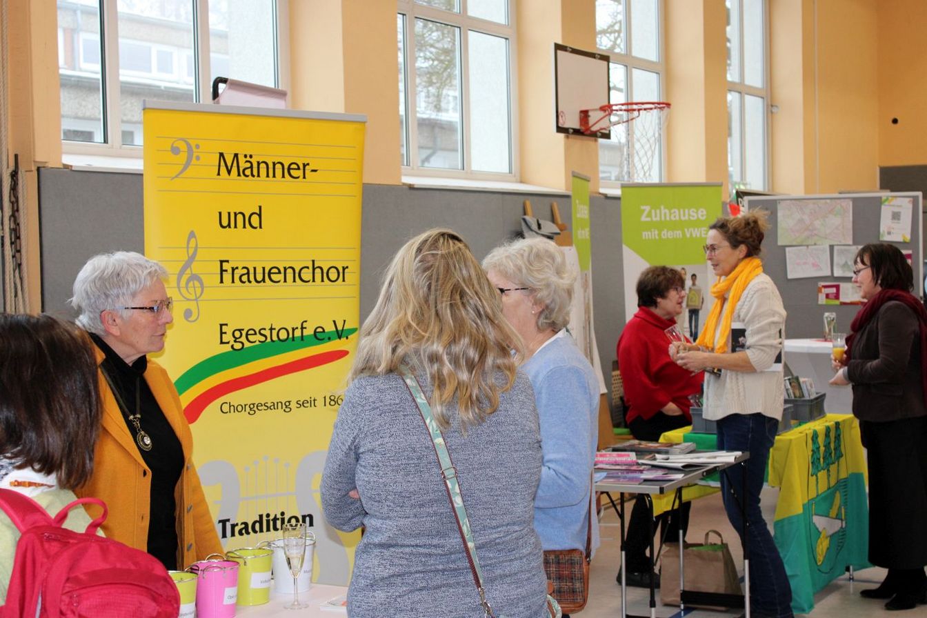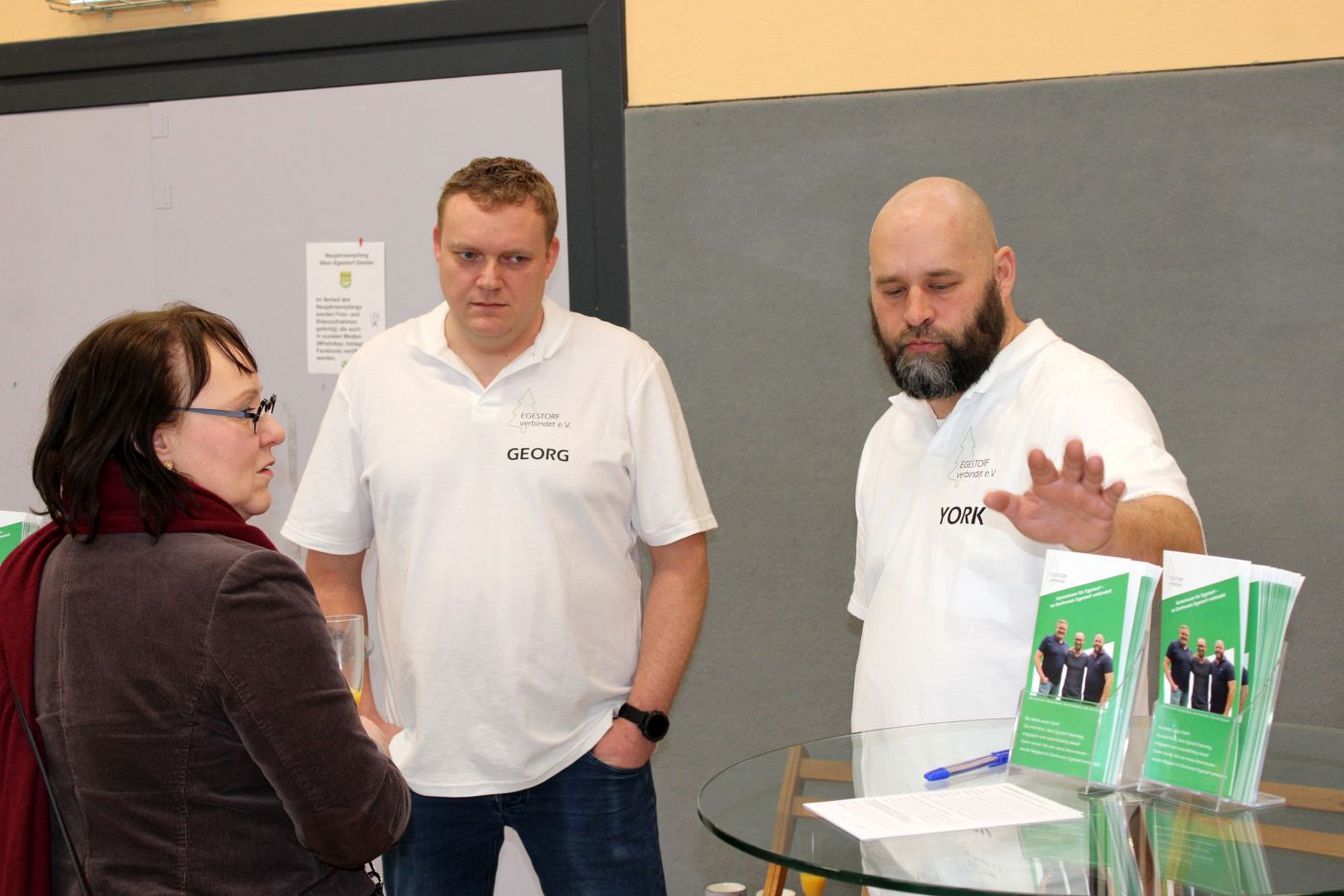 Zehn Vereine aus dem Ort folgten der Einladung der drei Initiatoren und stellten sich mit Ständen den interessierten Gästen vor. Da ein lockeres Miteinander im Vordergrund stand, verzichteten die Veranstalter bewusst auf ein umfangreiches Bühnenprogramm. Dennoch gab es eine kurze Talkrunde, in der sich die Freiwillige Feuerwehr, der Männer- und Frauenchor, die Kirche, das DRK, der 1. FC Germania, der VWE, der Schützenverein, der Verein Egestorf verbindet, der Förderverein der Ernst-Reuter-Schule sowie der TSV vorstellten. Dabei ging es nicht nur um die Vereinsarbeit, sondern auch um kommende Veranstaltungen wie Basare, Frühlingsfest, Herbstmarkt, Sportevents, Stadtradeln, Seniorenarbeit, Frauenfrühstück, Chorarbeit, den Bücherschrank, kirchliche Angebote und vieles mehr. „All das geht nur mit engagierten jungen Leuten“, betonte Ortsbeauftragter Wittschurky.